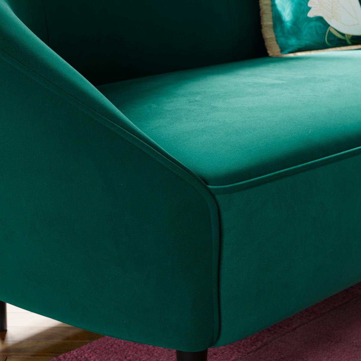 * Trendy sofa * Curved arms * Foam and Fibre filled cushions * Rubberwood legs This sofa offers a modern design with a luxurious feel. Upholstered in recycled velvet fabric, it features a stylish curved silhouette that enhances both comfort and elegance. Supported by durable rubberwood legs, this sofa provides a comfortable seating experience, making it a standout piece for any living room or lounge.