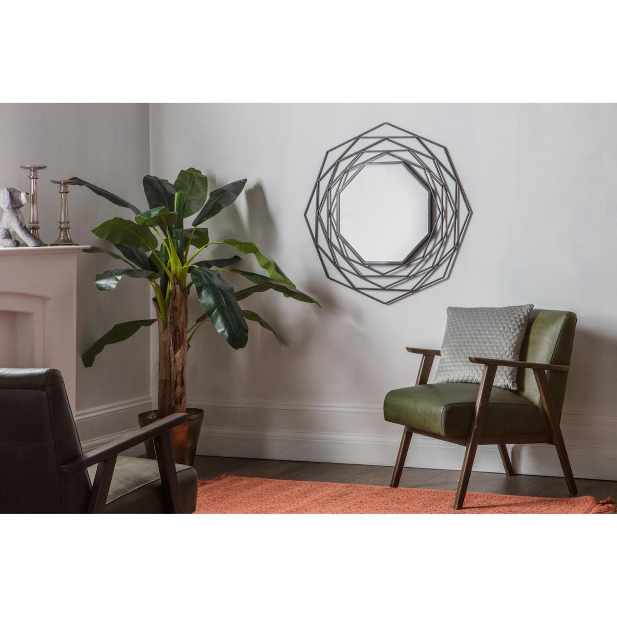 I really like the Aubrey Mirror for its contemporary geometric design, which adds visual interest without overwhelming a space. It works especially well in modern or minimal interiors, but can also bring a chic touch to more eclectic or industrial styles. When styling, consider placing it above a console or sideboard to maximise its sculptural aspect, and pair it with neutral tones or monochrome palettes for a sleek look. For a layered effect, try grouping it with smaller mirrors or artwork. Its open frame design also means it reflects light well, making it a practical choice for smaller rooms or darker areas.