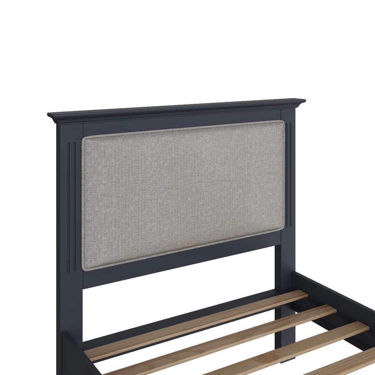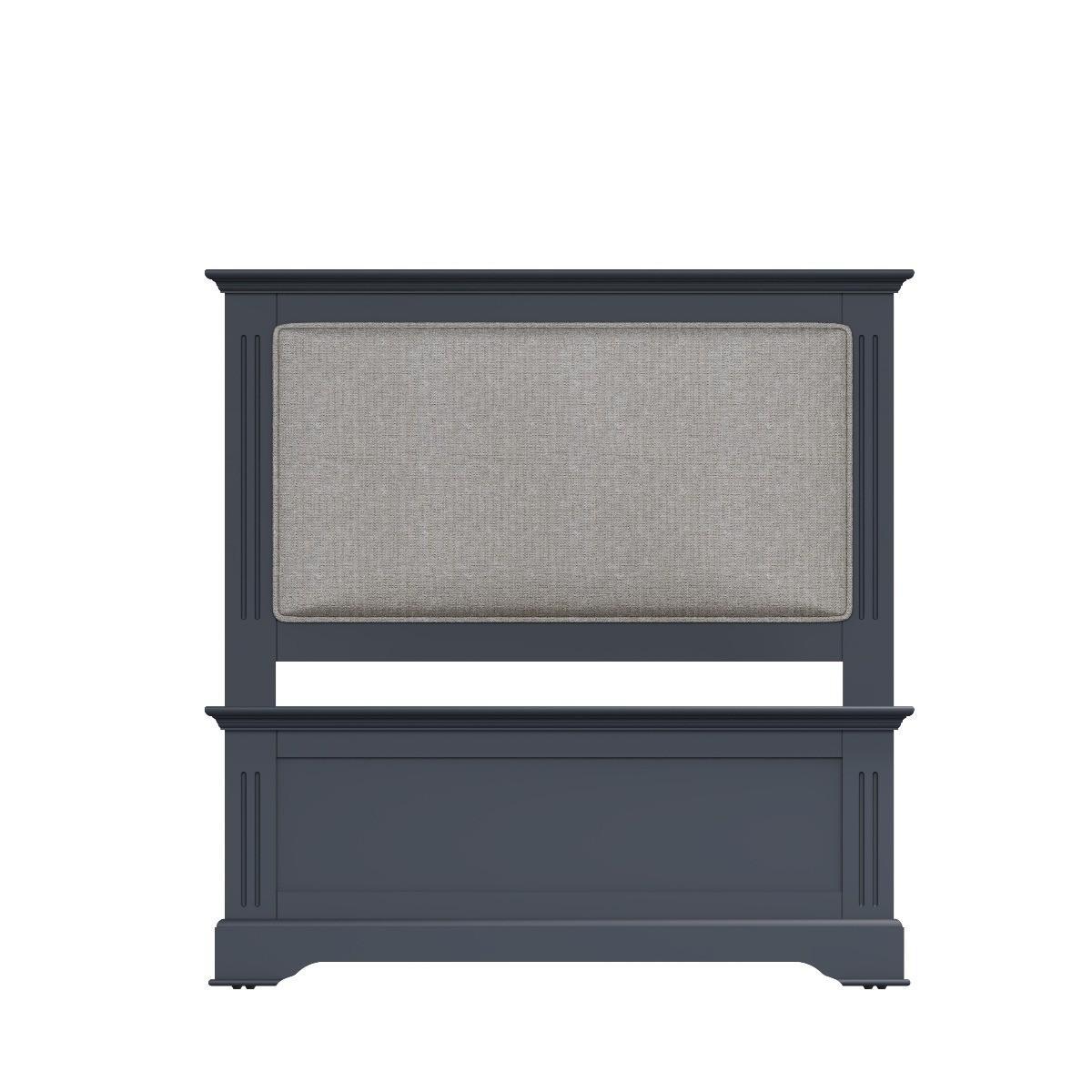 The Aubrey collection is dark and mysterious with linear detailing and sculptured cornices painted in a sophisticated midnight grey. No detail has been left out with this gorgeous and immensely practical contemporary bed. Solid wooden slats provide sturdy support for your body, and the upholstered headboard offers softer cushioning—the perfect balance of materials for great quality sleep. Sturdy solid wood frame and slats for extra support. Stylishly upholstered headboard. Available in single, double and king size. Finished in a modern midnight grey paint