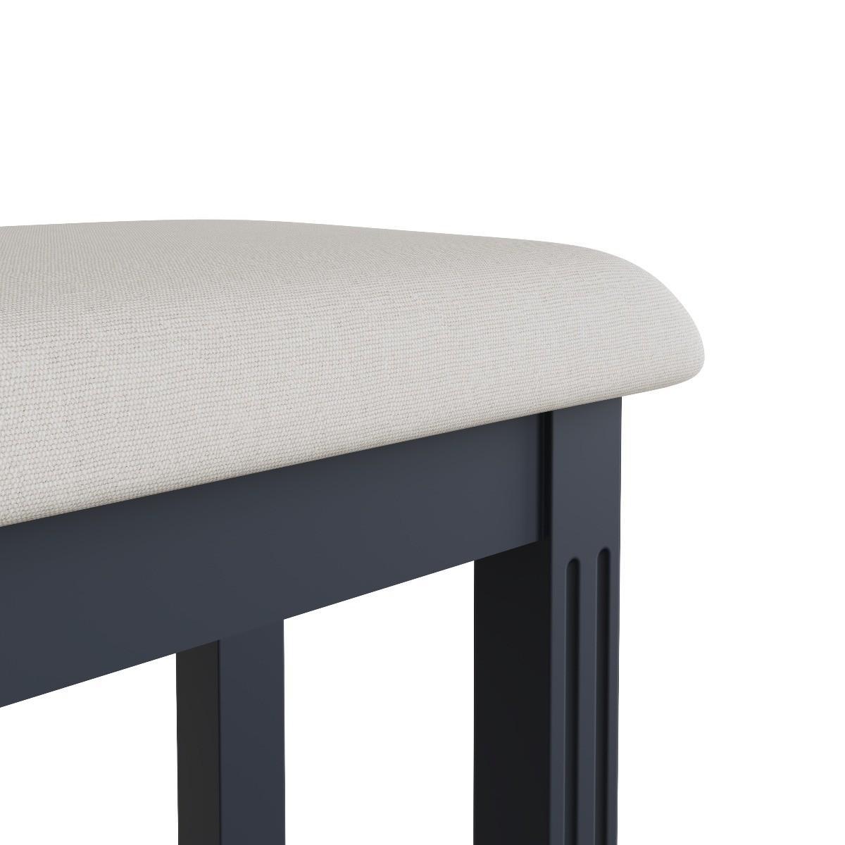 The Aubrey collection is dark and mysterious with linear detailing and sculptured cornices painted in a sophisticated midnight grey. No detail has been left out with this gorgeous and immensely practical contemporary stool. Make sure you sit with the Aubrey dressing table and mirror to make a stunning set. Robustly crafted from pine and MDF for extra durability Comfy upholstered seat. Finished in a modern midnight grey paint