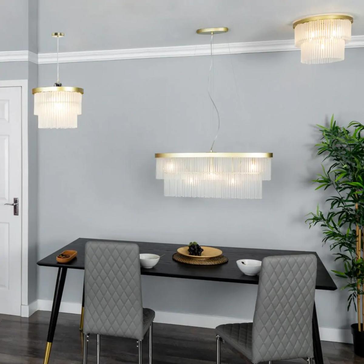 I love this flush ceiling light for its elegant blend of contemporary design and timeless brass detailing. It works particularly well in modern, minimalist interiors or even in more eclectic spaces where a subtle touch of glamour is desired. The tiered glass design adds visual interest without overwhelming the room, making it versatile for bedrooms, living rooms, or even hallways. For styling tips, consider pairing it with other brass accents or soft fabrics to create a cohesive look, and ensure the room has enough height to fully appreciate its layered detail. It’s a practical choice that elevates the overall aesthetic while providing warm, diffused lighting.