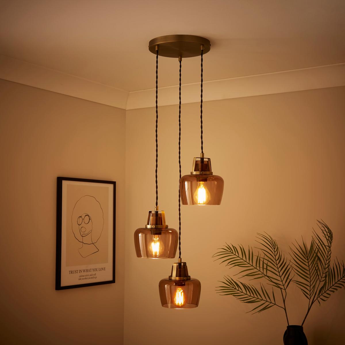 I love the auburn three-light cluster for its modern yet versatile look, offering a pop of colour that can inject personality into a variety of interiors. It works particularly well in contemporary open-plan spaces or kitchens where a statement pendant can add visual interest without overwhelming the surroundings. For styling tips, consider pairing it with warm-toned or neutral decor to complement the multi-coloured finish, and hang it at a height that ensures it feels integrated but not intrusive. It also pairs nicely with minimalist or industrial interiors, where it can serve as a subtle colour accent while maintaining a sleek aesthetic.