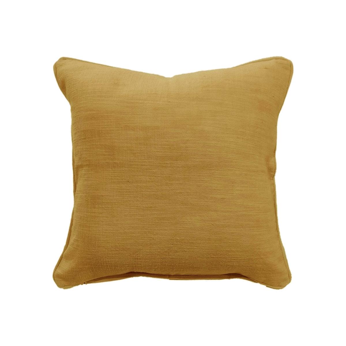 The Auckland Fabric Cushion in dark yellow textured fabric adds a touch of modernity to your sofa, armchair, or bed. This chic modern accent cushion is feather-filled and made in the UK, adding a burst of colour and texture with ease.