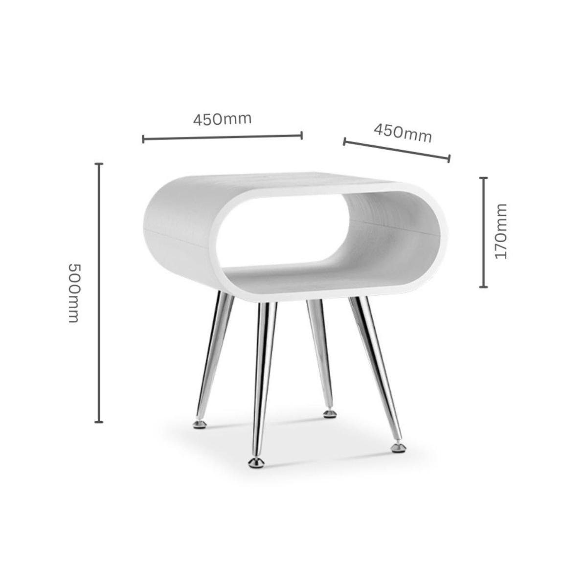 I really rate this little white side table for its clean, rounded silhouette and gleaming finish - it slots effortlessly into modern or Scandi schemes. The slim metal legs lift it off the floor, keeping the look light and airy, so it works equally well beside a sofa or as a bedside perch. For styling, try pairing it with a small ceramic vase or a simple table lamp to echo its curves, and tuck a couple of coffee-table books in the open shelf for added interest. Its compact size also makes it ideal for a hallway alcove topped with a decorative bowl or a mirror hung just above.