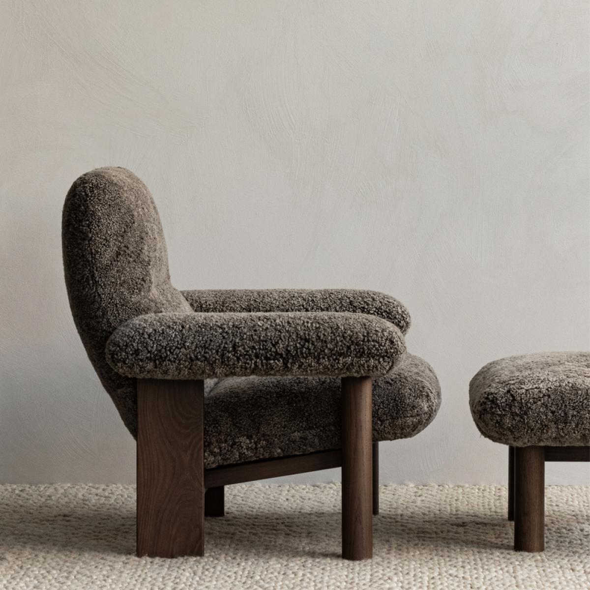 Audo Copenhagen Brasilia armchair Sheepskin root brown oak legs