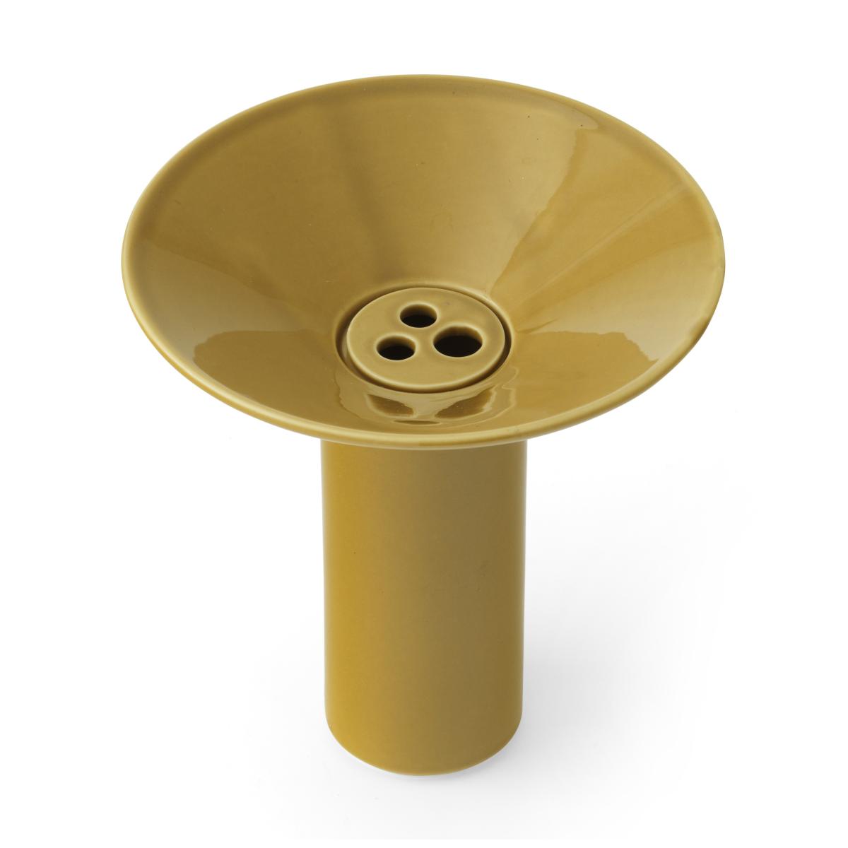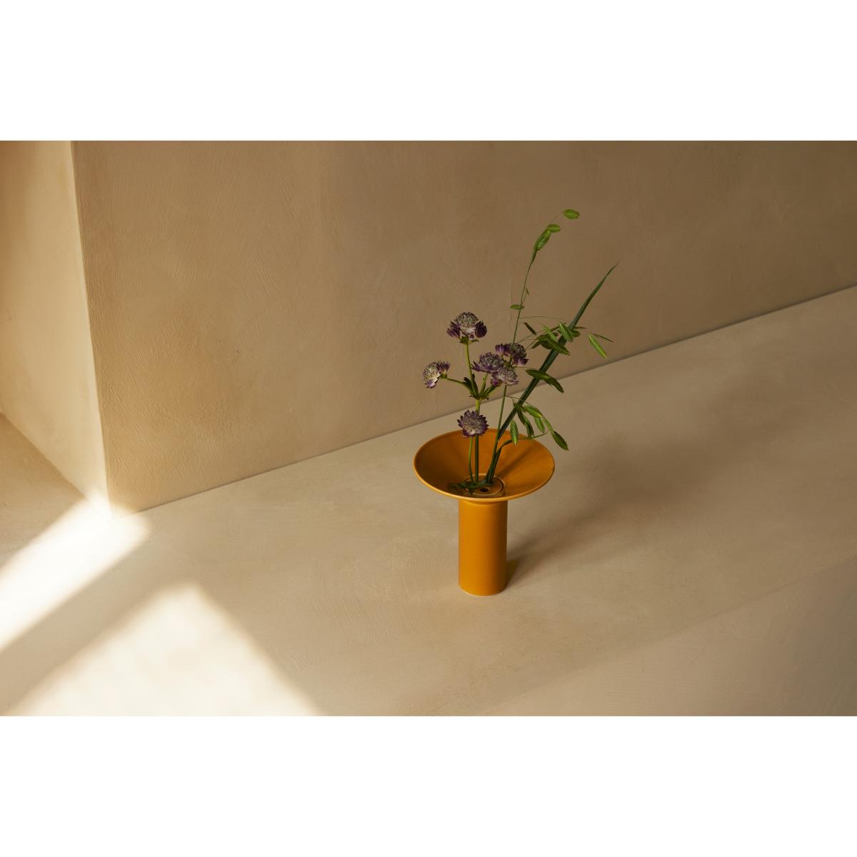 I love this vase for its bold, sculptural shape and warm ochre tone, which adds a cosy yet contemporary touch to any space. Its simple, geometric design works well in modern, minimalist interiors, but it can also be a striking feature in more eclectic settings. The vessel is versatile; it’s perfect for single-stem flowers or small bouquets, but also looks great styled solo as an abstract sculpture. For practical styling tips, I suggest pairing it with other earthy or neutral tones to highlight its colour, and placing it on a sleek coffee table, sideboard, or mantelpiece for maximum visual impact. Its sturdy form yet elegant silhouette makes it a flexible piece that can serve as a centrepiece or an understated accent.