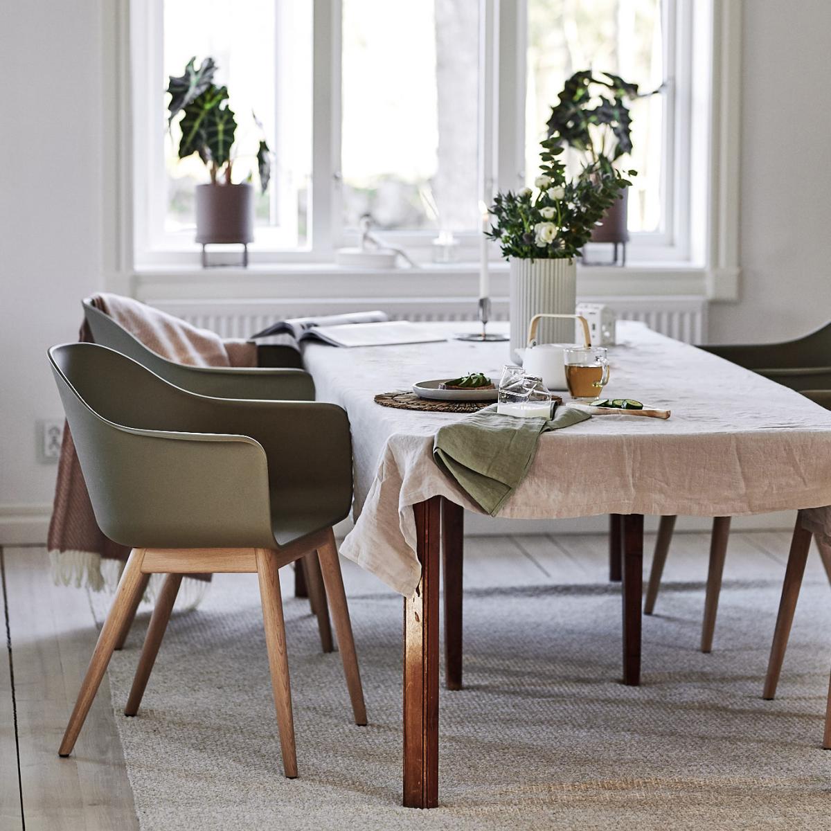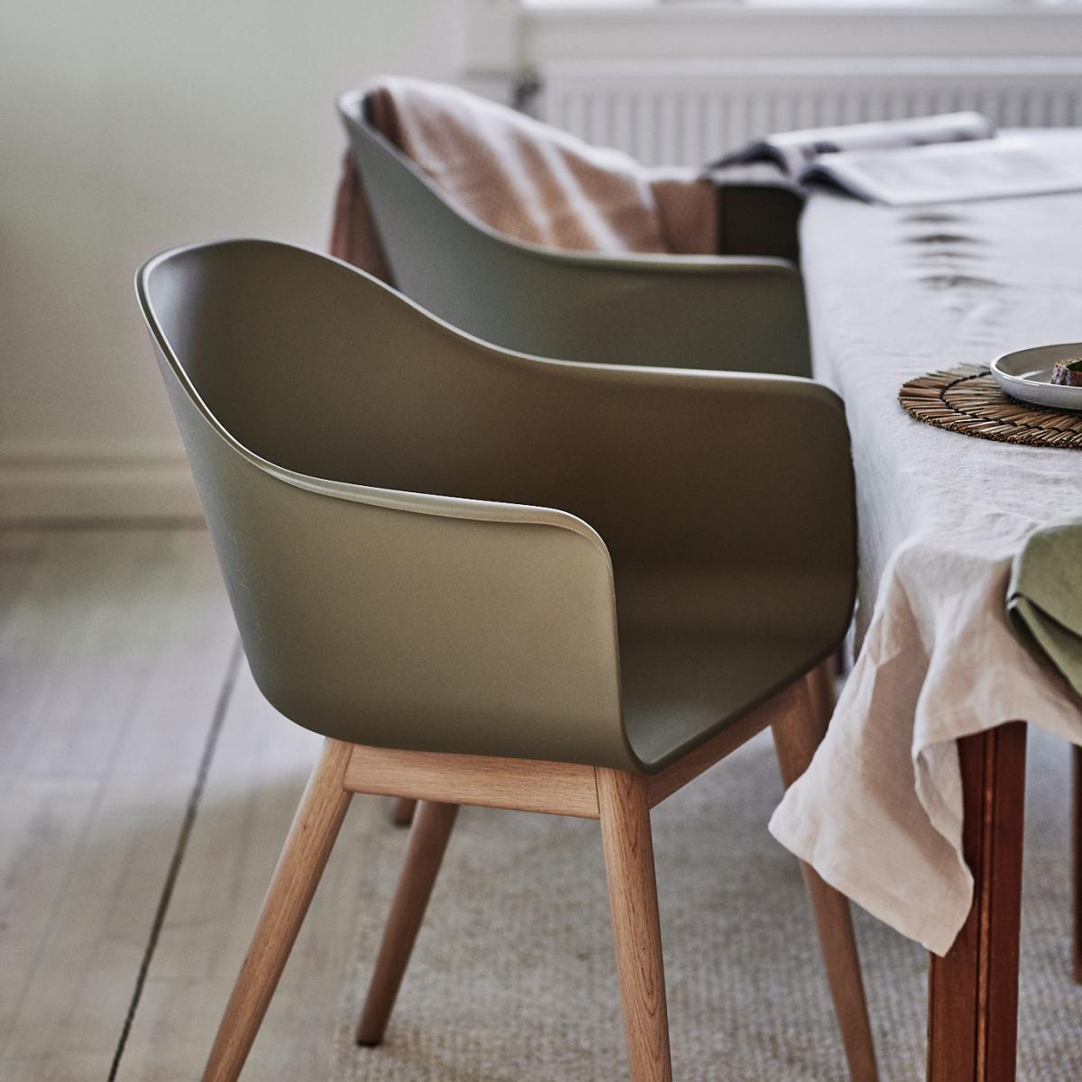 I’ve been using the Harbour chair in olive for its clean lines and muted green tone - it’s comfortable without feeling bulky and the light oak legs add a warm, natural touch. It sits equally well in a Scandi-inspired kitchen, a pared-back home office or even as occasional seating in a hallway. For styling, pair it with a simple oak or white laminate table and layer in linen cushions or a woven seat pad for extra comfort. Keep nearby accents in terracotta, stoneware or soft greys to tie the olive colour into your overall scheme. A small potted plant beside it will bring the look together.