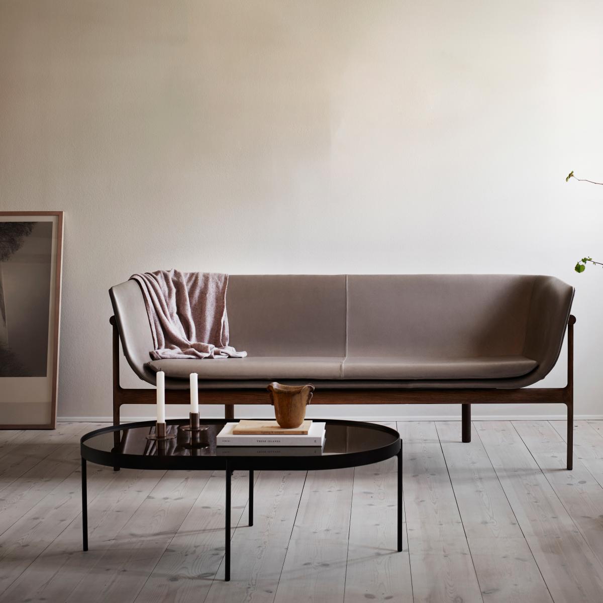 I love the Audo Copenhagen NoNo coffee table for its sleek, contemporary silhouette and versatile colour palette. Its black-brown finish makes it adaptable to both modern and eclectic interiors, adding warmth and sophistication without overpowering the space. It works particularly well in minimalist or Scandinavian-inspired living rooms, where its understated elegance can shine, but it can also serve as a grounding piece in more eclectic interiors. Practical styling tips include pairing it with layered textiles like textured rugs and cushions to soften the look, or decorating the surface with a mix of books, plants, and minimal accessories for a curated yet effortless feel. Its size is ideal for smaller to medium living areas, providing functional surface space while maintaining an airy, uncluttered aesthetic.
