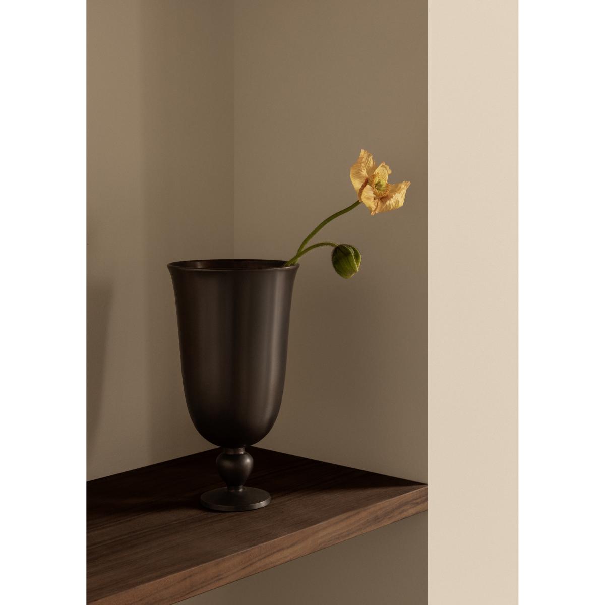 Pavot vase from Audo Copenhagen is made of aluminum and has a sculptural form that adds character to the room. With its balanced design, it works equally well as a solitary decorative piece or filled with cut flowers or branches. The playful silhouette creates dynamism and makes the vase fit in both classic and modern environments. Place it on a table, a shelf, or a windowsill to give the room a stylish and personal touch.