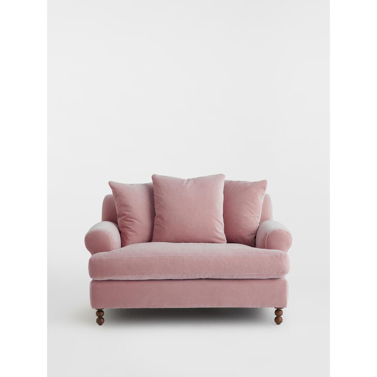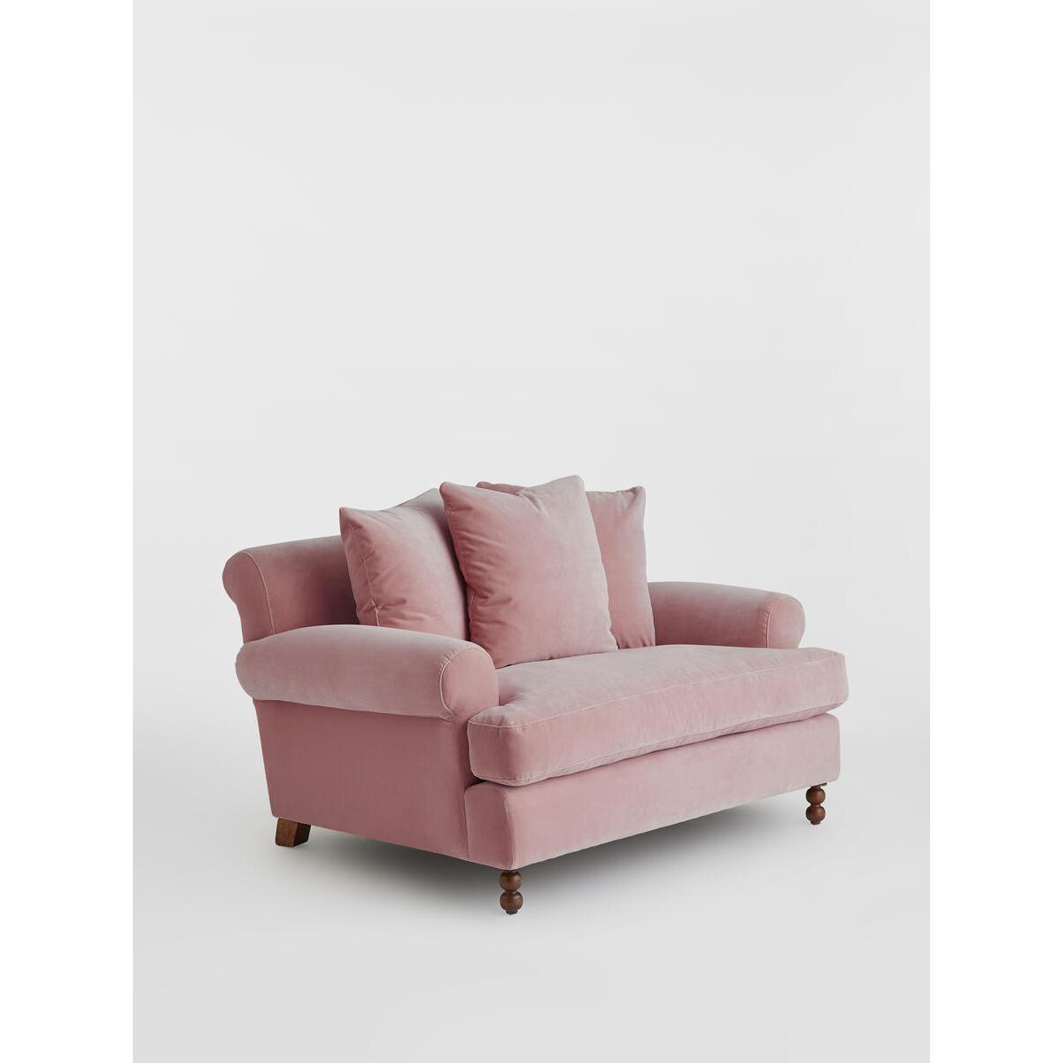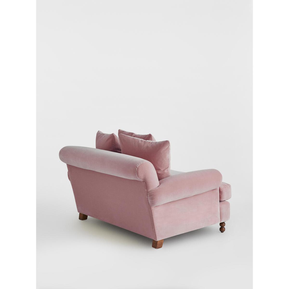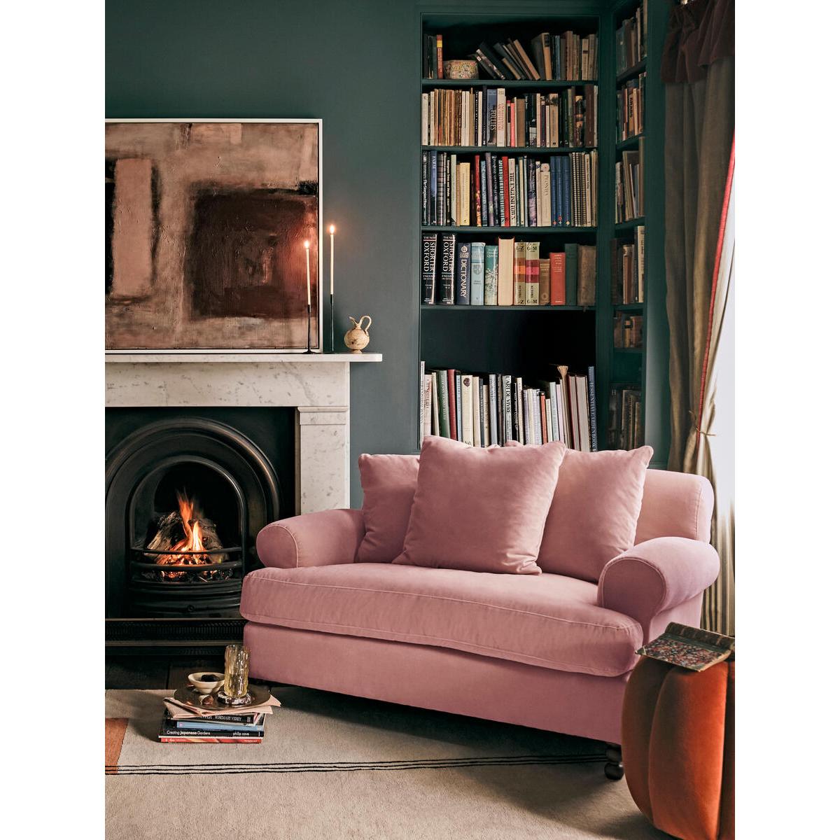 Inspired by the classic interiors of Babington House, our Audreyloveseat is cut from velvet and shows our take on a traditionalcigar arm. The feather-wrapped foam seat cushion enhances thedeep-sit lounger shape, while oversized scatter cushions give ahomely feel. Velvet loveseat. Soho House take on a traditional cigar arm. FSC-certified solid hardwood frame. Deep-sit lounge style. Oversized scatter cushions. Feather-wrapped foam cushion, fully reversible. Solid wood bobbin legs. Inspired by Babington House.