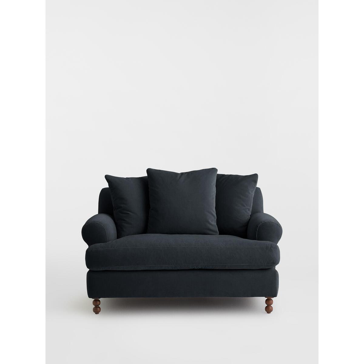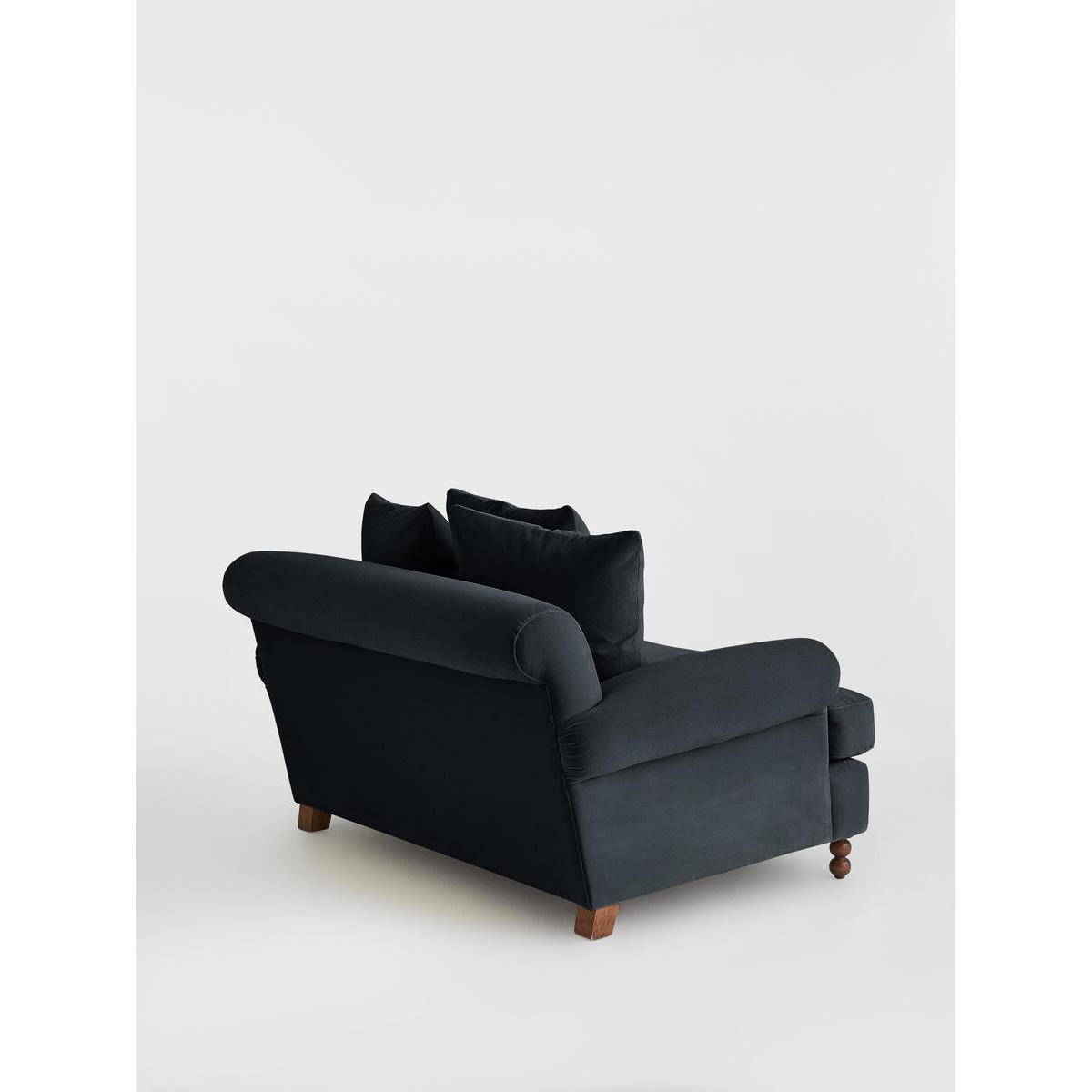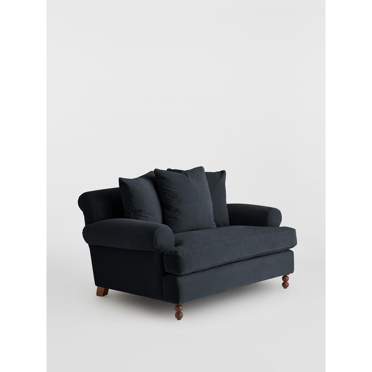 Inspired by the classic interiors of Babington House, our Audreyloveseat is cut from velvet and shows our take on a traditionalcigar arm. The feather-wrapped foam seat cushion enhances thedeep-sit lounger shape, while oversized scatter cushions give ahomely feel. Velvet loveseat. Soho House take on a traditional cigar arm. FSC-certified solid hardwood frame. Deep-sit lounge style. Oversized scatter cushions. Feather-wrapped foam cushion, fully reversible. Solid wood bobbin legs. Inspired by Babington House.