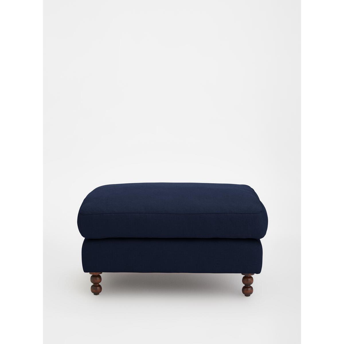 Inspired by the classic interiors of Babington House, our Audreyottoman is cut from linen with a feather-wrapped foam seat cushion. Pair it with the Audrey loveseat and sofa for a coordinated livingroom scheme. Linen ottoman. FSC-certified solid hardwood frame. Deep-sit lounge style. Feather-wrapped foam cushion. Solid wood bobbin legs. Inspired by Babington House.