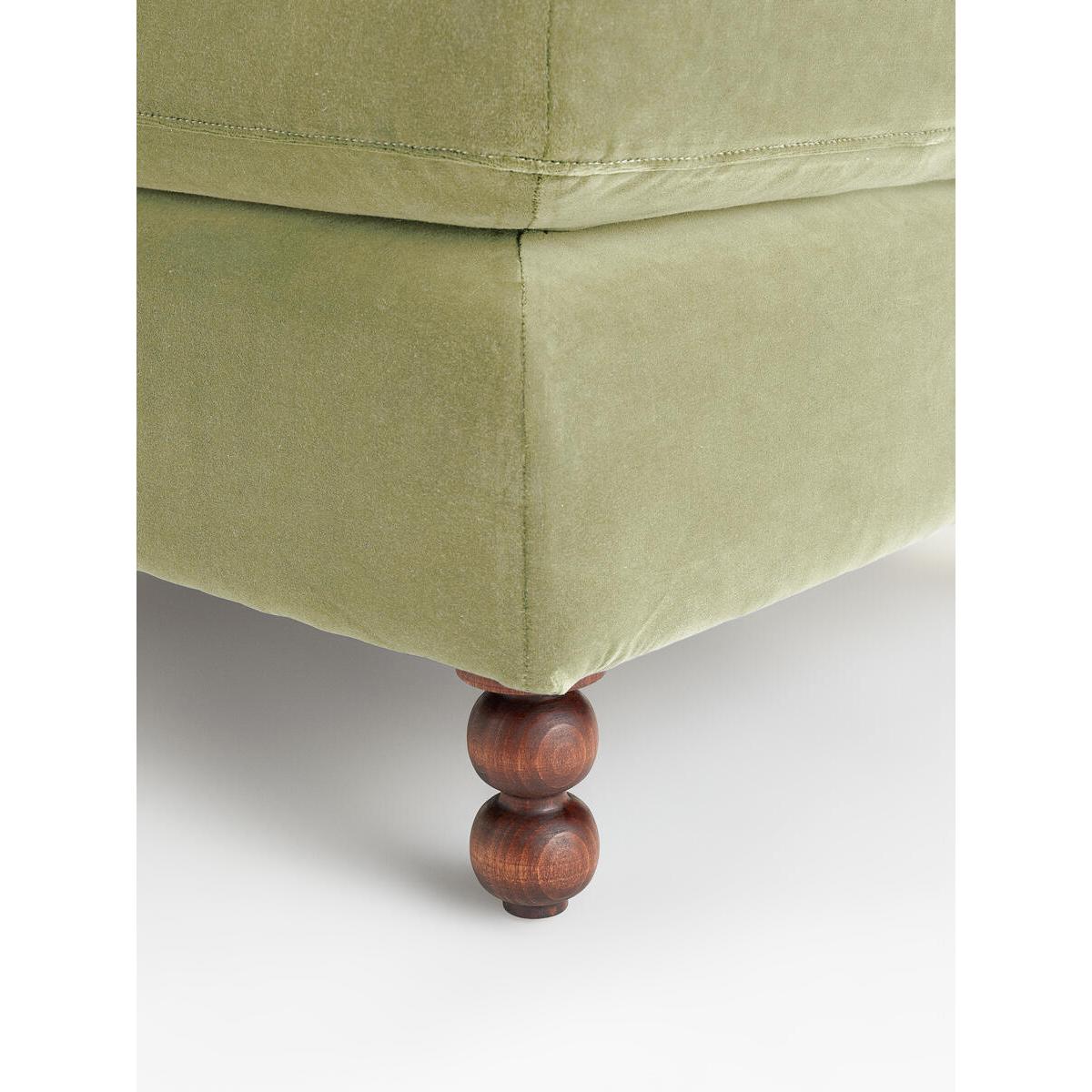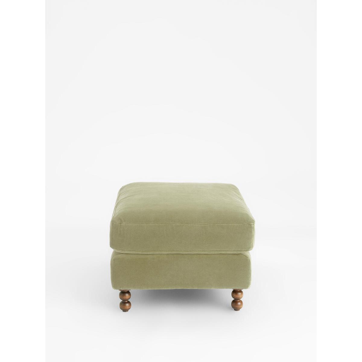 Inspired by the classic interiors of Babington House, our Audreyottoman is cut from velvet with a feather-wrapped foam seatcushion. Pair it with the Audrey loveseat and sofa for acoordinated living room scheme. Velvet ottoman. FSC-certified solid hardwood frame. Deep-sit lounge style. Feather-wrapped foam cushion. Solid wood bobbin legs. Inspired by Babington House.