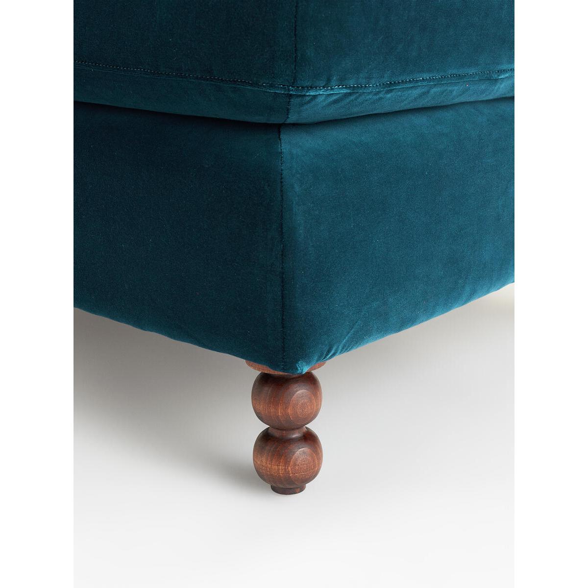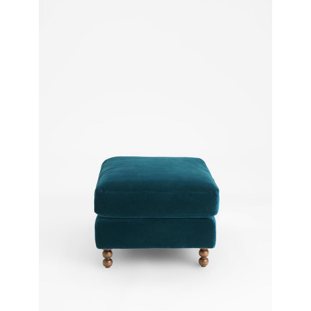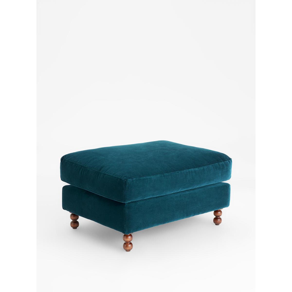 Inspired by the classic interiors of Babington House, our Audreyottoman is cut from velvet with a feather-wrapped foam seatcushion. Pair it with the Audrey loveseat and sofa for acoordinated living room scheme. Velvet ottoman. FSC-certified solid hardwood frame. Deep-sit lounge style. Feather-wrapped foam cushion. Solid wood bobbin legs. Inspired by Babington House.