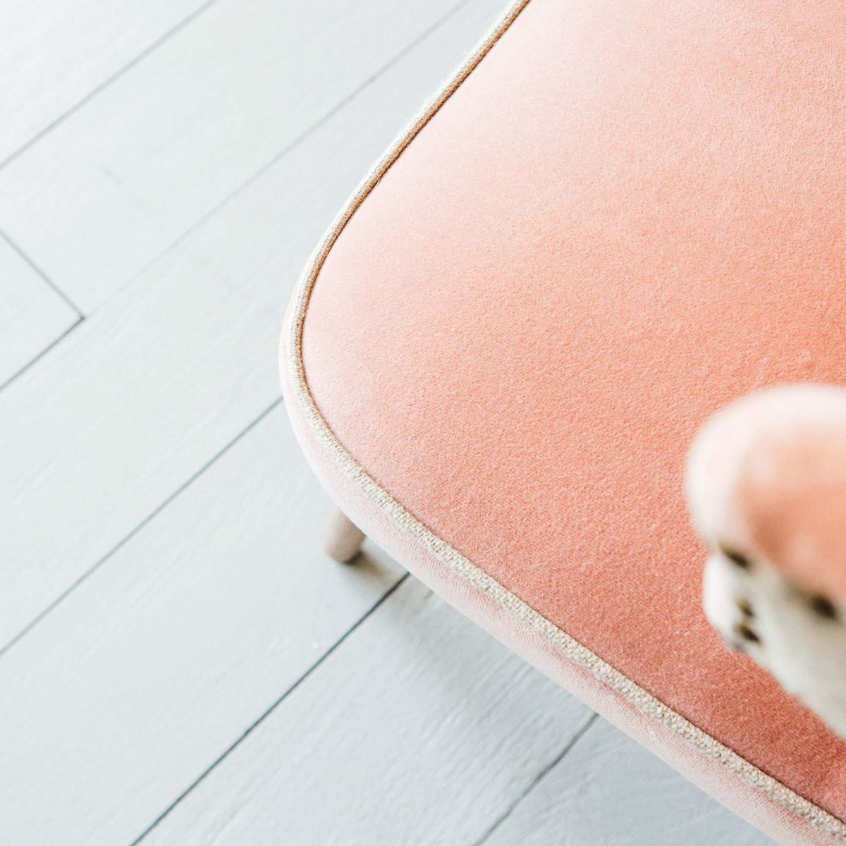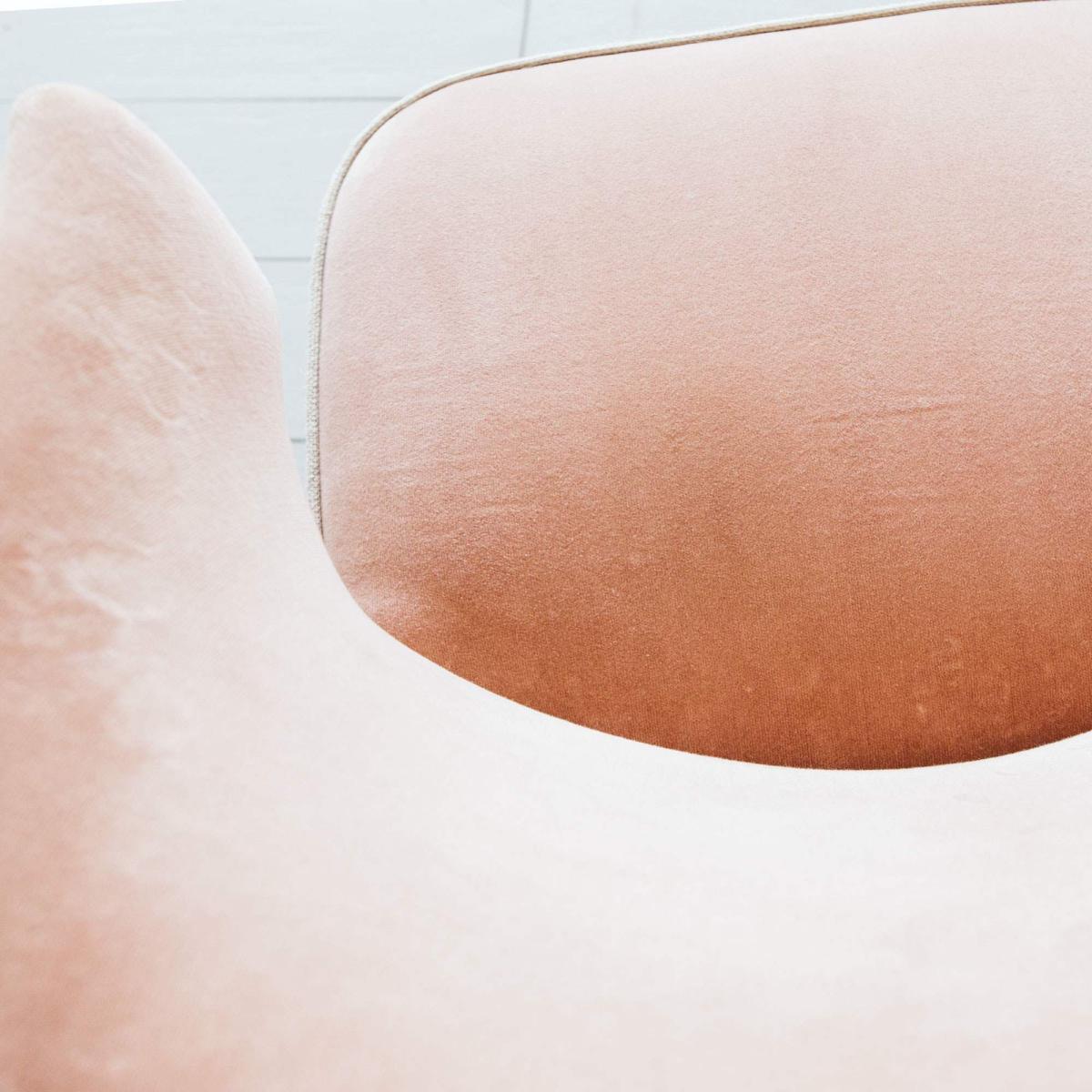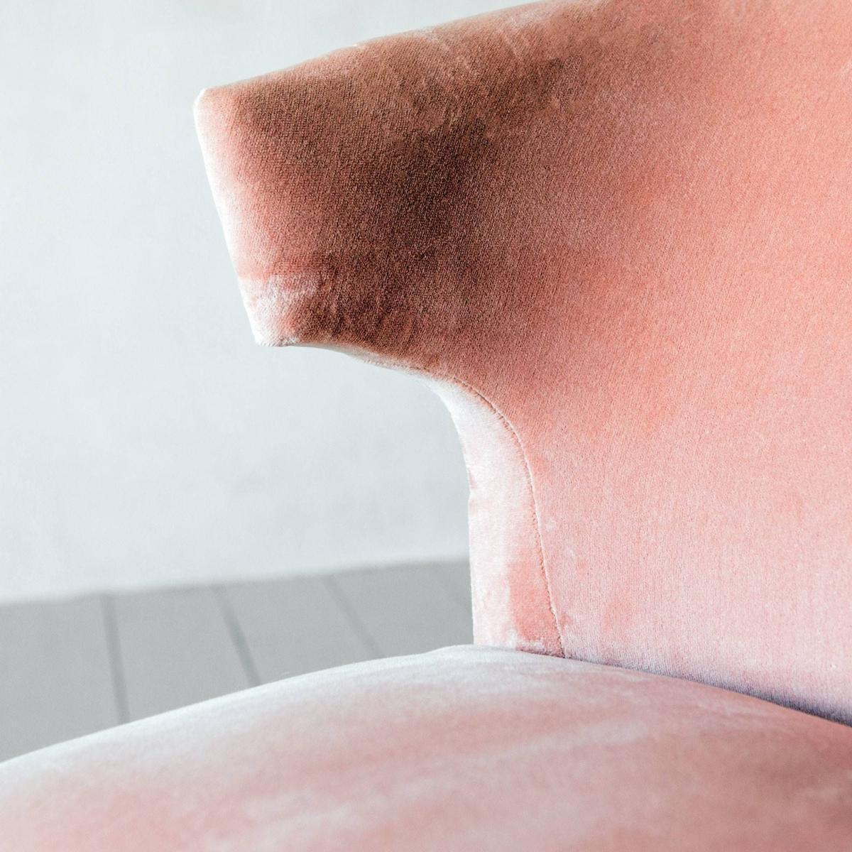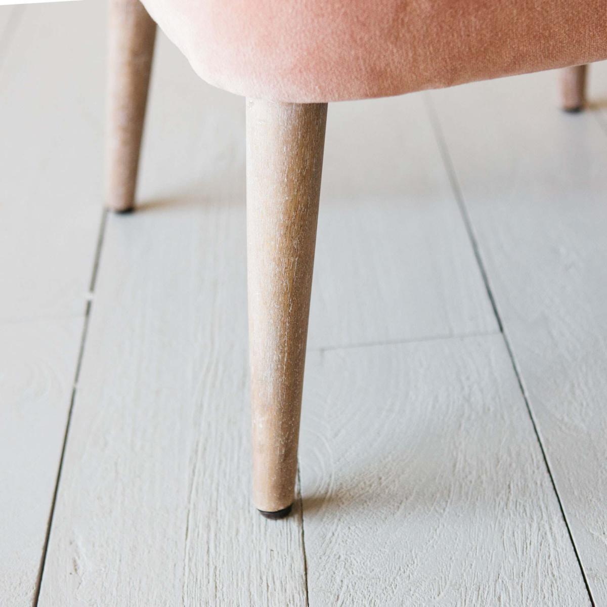 A twist on 50's cocktail chairs, our Audrey chair is upholstered in soft pink velvet with a natural linen back and brass stud detailing. Finished with classic tapered legs crafted from sustainable mango wood.