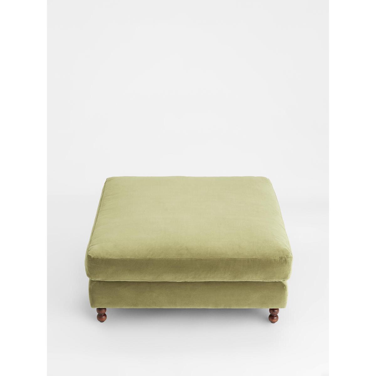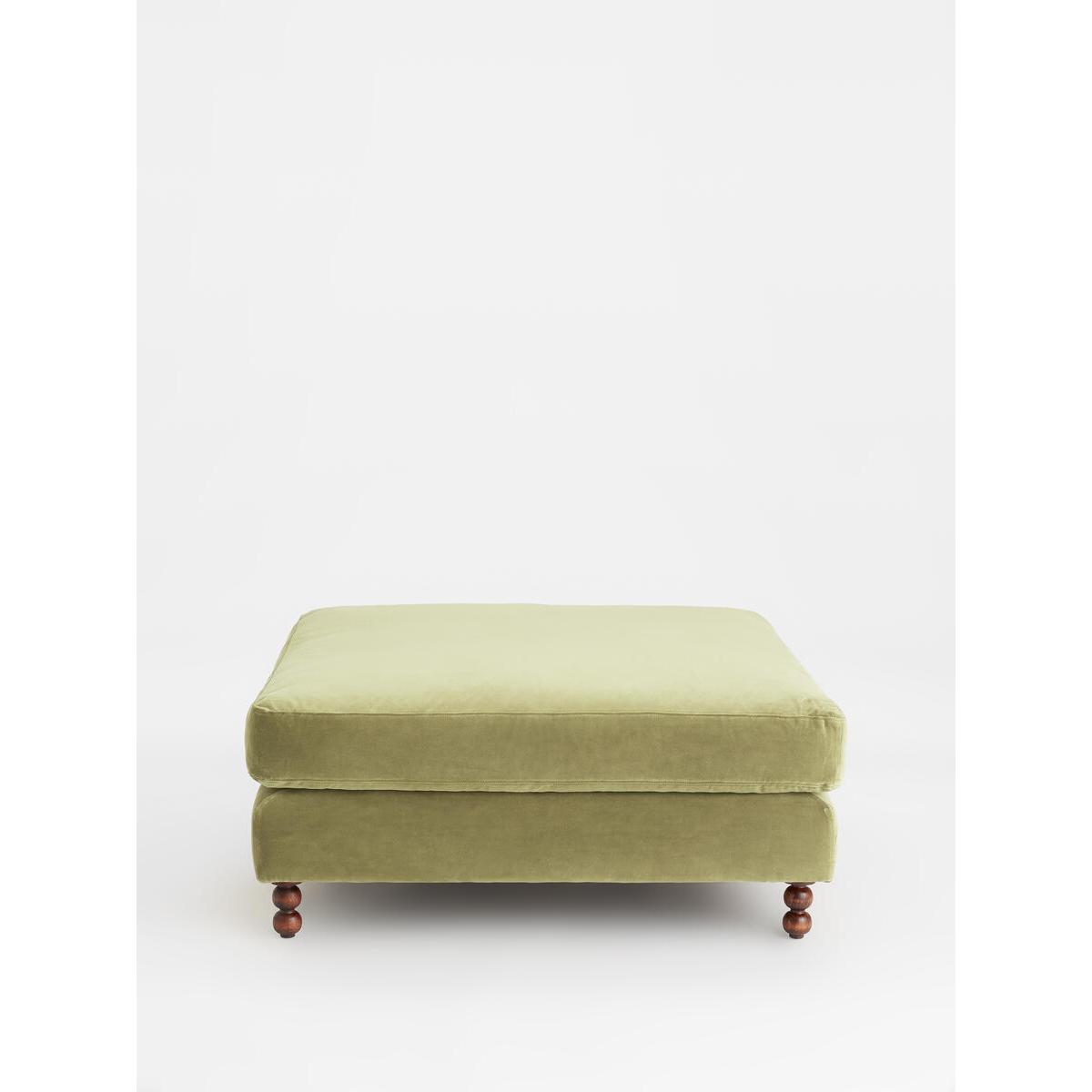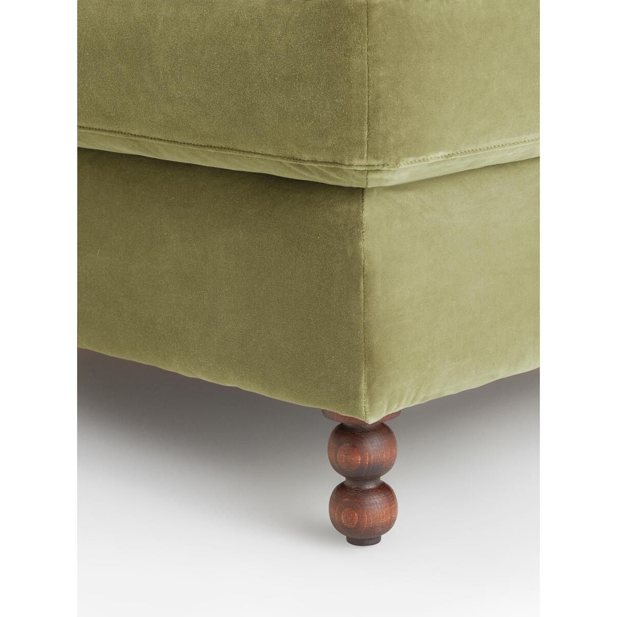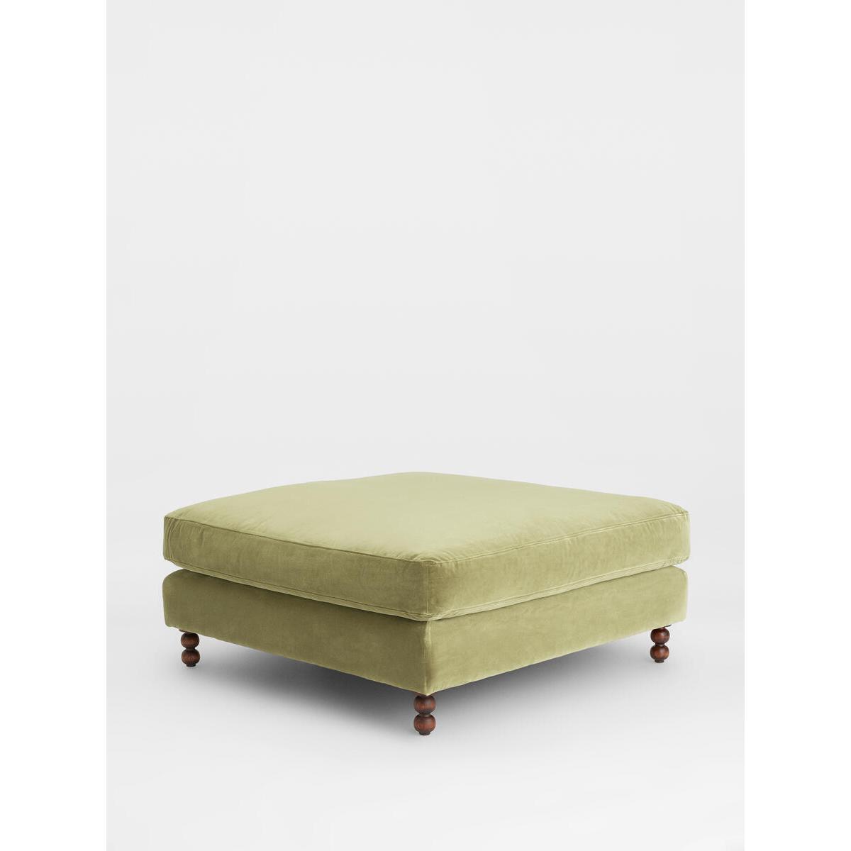 Inspired by the classic interiors of Babington House, our Audreyottoman is cut from velvet with a feather-wrapped foam seatcushion. Pair it with the Audrey loveseat and sofa for acoordinated living room scheme. Velvet square ottoman. FSC-certified solid hardwood frame. Deep-sit lounge style. Feather-wrapped foam cushion. Solid wood bobbin legs. Inspired by Babington House.