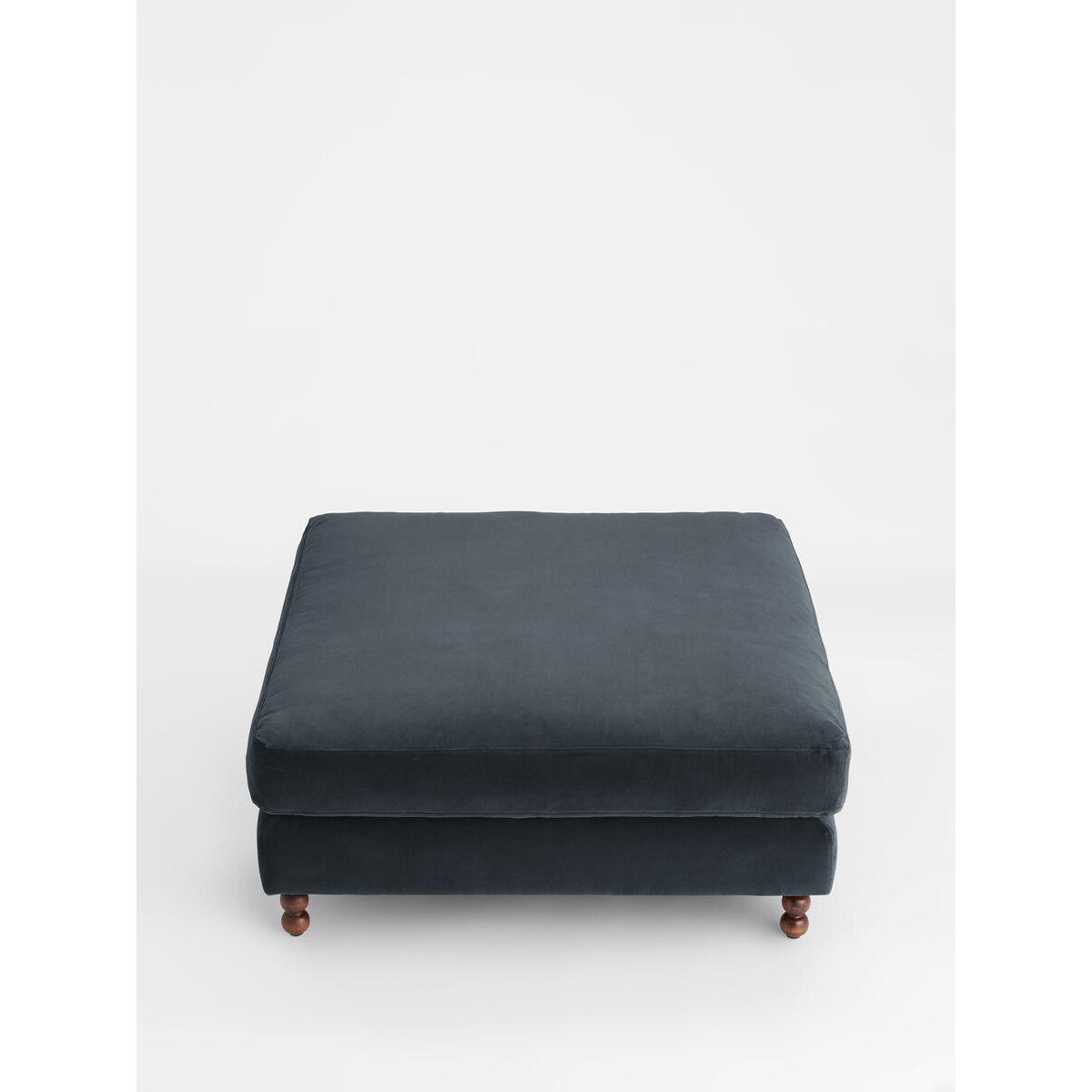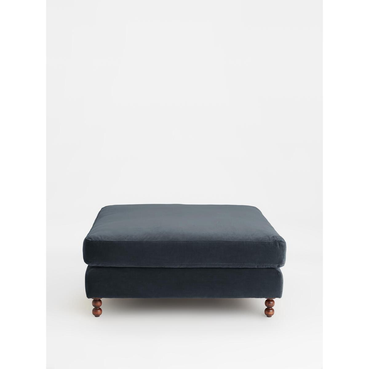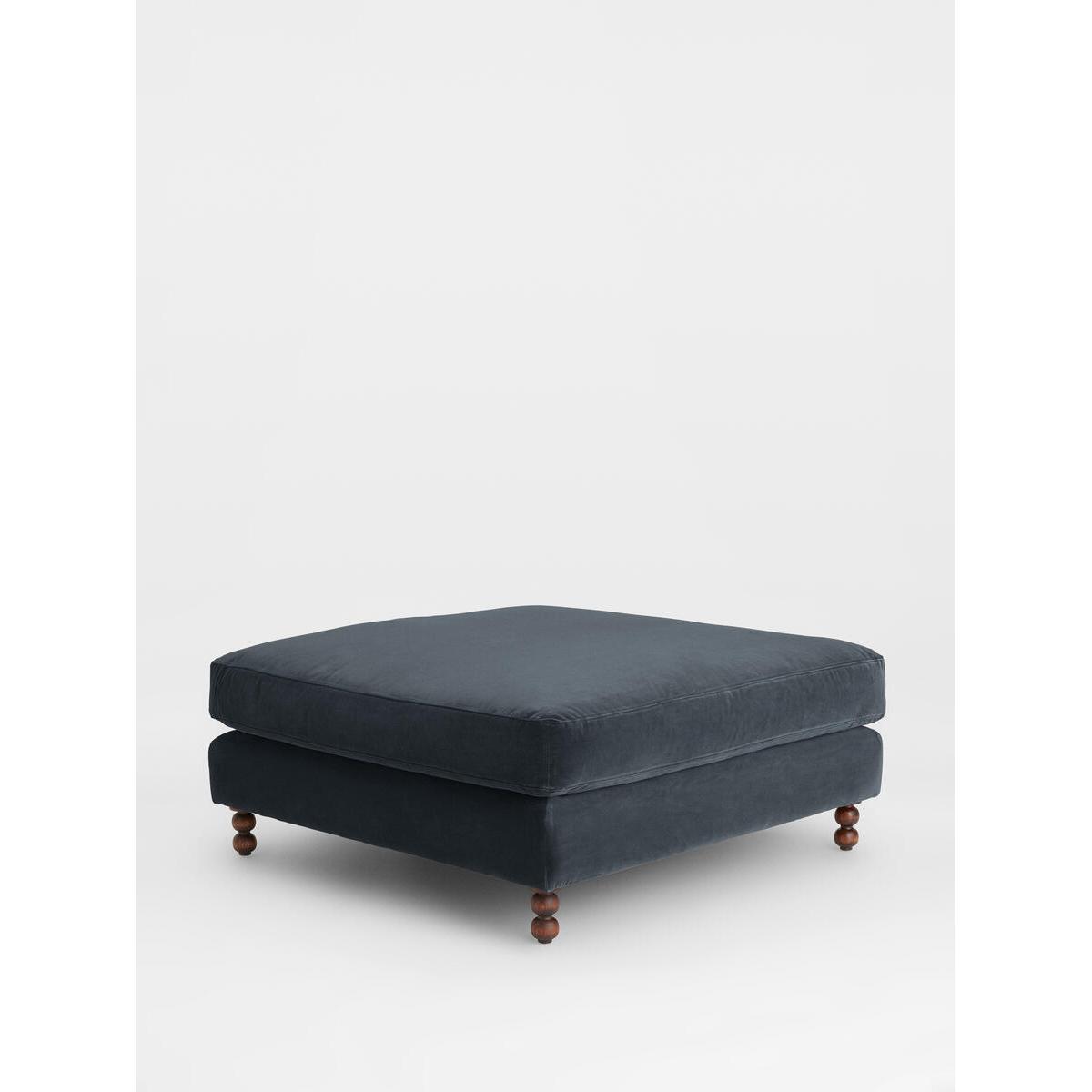 Inspired by the classic interiors of Babington House, our Audreyottoman is cut from velvet with a feather-wrapped foam seatcushion. Pair it with the Audrey loveseat and sofa for acoordinated living room scheme. Velvet square ottoman. FSC-certified solid hardwood frame. Deep-sit lounge style. Feather-wrapped foam cushion. Solid wood bobbin legs. Inspired by Babington House.