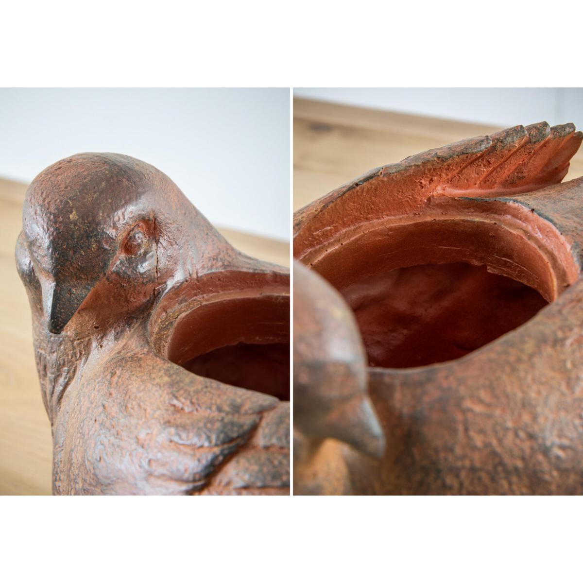 I love the bird-shaped resin pot for its playful yet sophisticated aesthetic. It works particularly well in contemporary or eclectic interiors, adding a quirky touch without overwhelming the space. Its neutral earthy tones make it versatile for rooms with natural textures or modern minimal palettes. For styling, consider placing this large bird planter on a sideboard or shelf to act as a statement piece, and team it with leafy foliage or succulents for a fresh, lively contrast. Its size and design make it ideal for larger plants or small trees, creating a focal point that brings a bit of nature indoors with a fun twist.