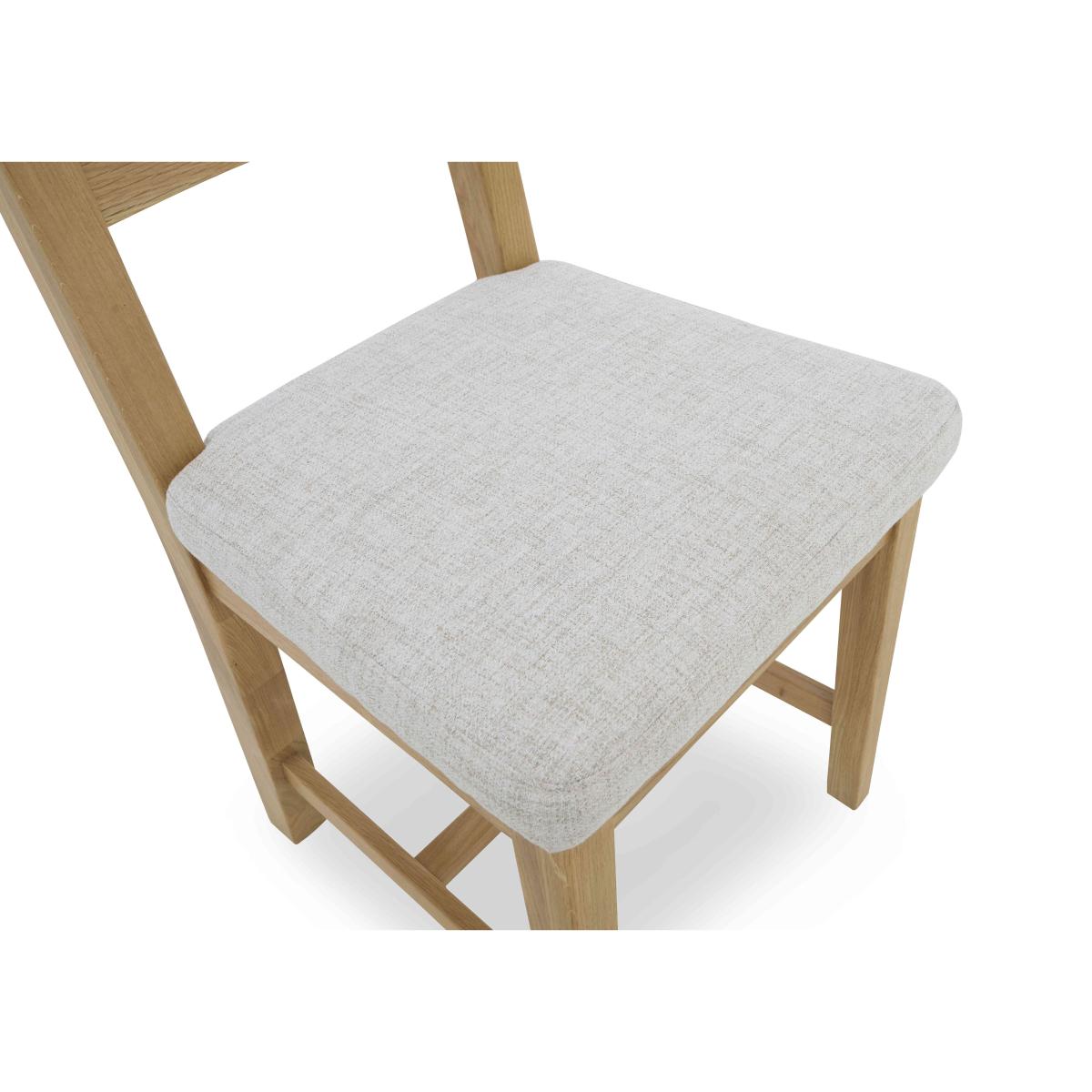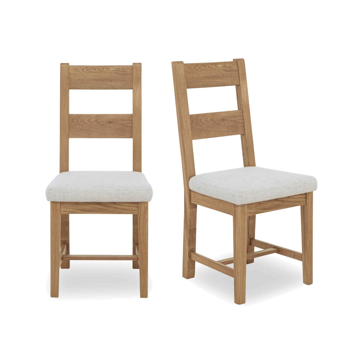 Characterful oak furniture at a great value-price? We’re here for it. Our Augusta range of dining room and living room is beautifully crafted in solid oak and oak veneer and offers an extensive choice of pieces for living rooms and dining rooms. So versatile, Augusta is a perfect fit for modern country homes and just as pleasing in classic interiors. With three styles of extending dining table and five styles of dining chair, it’s easy to create a dining set that’s clean-lined and classic – or one that’s contemporary and eclectic. The Augusta collection is exclusively available at Furniture Village. The classic ladderback dining chair gets a stylish update in this pair of dining chairs. Well-cushioned and upholstered in a neutral fabric, it’s an easy choice for your dining room. Why you'll love it You’ll feel at home with oak furniture from our Augusta range. Characterful modern country style at a great price. These ladderback dining chairs are beautifully crafted in oak. A clear lacquer finish protects and enhances the wood. Understated design with clean lines. Cushioned seat is upholstered in a neutral clay colour. Perfect for everyday dining and family gatherings. Exclusively available at Furniture Village. This pair of wooden ladderback dining chairs is part of the Augusta range. What you need to know Made from oak. Cushioned with foam. No two pieces of wood are the same. Variations in colour will occur. Avoid placing in direct sunlight or close to a heat source. Wipe clean with a damp cloth and then dry using a soft duster. Do not use silicon-based furniture polish or abrasive cleaners. Shop the Augusta range for a huge choice of living and dining room furniture.