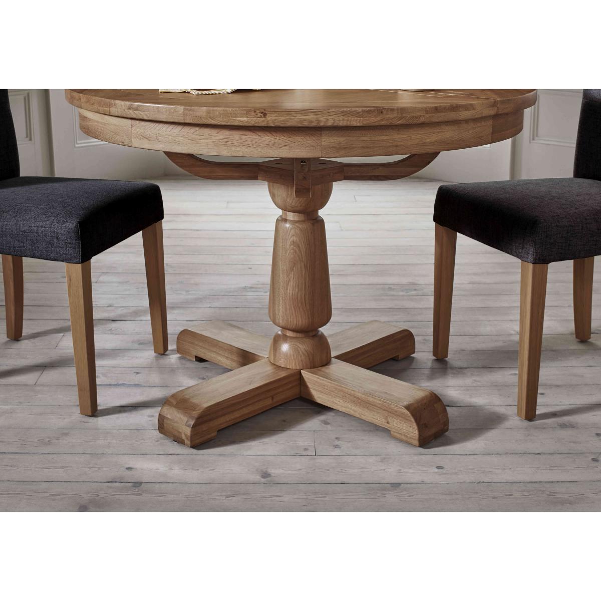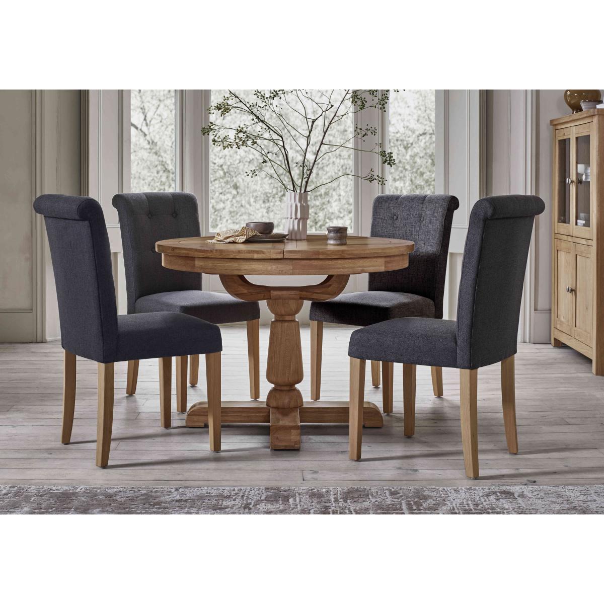 Characterful oak furniture at a great value-price? We’re here for it. Our Augusta range of dining room and living room is beautifully crafted in solid oak and oak veneer and offers an extensive choice of pieces for living rooms and dining rooms. So versatile, Augusta is a perfect fit for modern country homes and just as pleasing in classic interiors. With three styles of extending dining table and five styles of dining chair, it’s easy to create a dining set that’s clean-lined and classic – or one that’s contemporary and eclectic. The Augusta collection is exclusively available at Furniture Village. A round dining table makes the conversation flow. Perfect for traditional or modern country dining spaces, this circular table is made from solid oak and oak veneer and extends to seat six. Why you'll love it You’ll feel at home with oak furniture from our Augusta range. Characterful modern country style at a great price. This circular extending dining table is beautifully crafted in oak and oak veneer. A clear lacquer finish protects and enhances the wood. Understated design with clean lines and pedestal base. Simple butterfly mechanism quickly extends this table to seat 6. Perfect for everyday dining and family gatherings. Exclusively available at Furniture Village. This round extending dining table is part of the Augusta range. What you need to know Made from oak and oak veneer. Seats 4 closed and extends to seat 6. No two pieces of wood or veneer are the same. Variations in colour will occur. Avoid placing in direct sunlight or close to a heat source. We recommend using coasters and placemats at all times. Wipe clean with a damp cloth and then dry using a soft duster. Do not use silicon-based furniture polish or abrasive cleaners. Shop the Augusta range for a huge choice of living and dining room furniture.