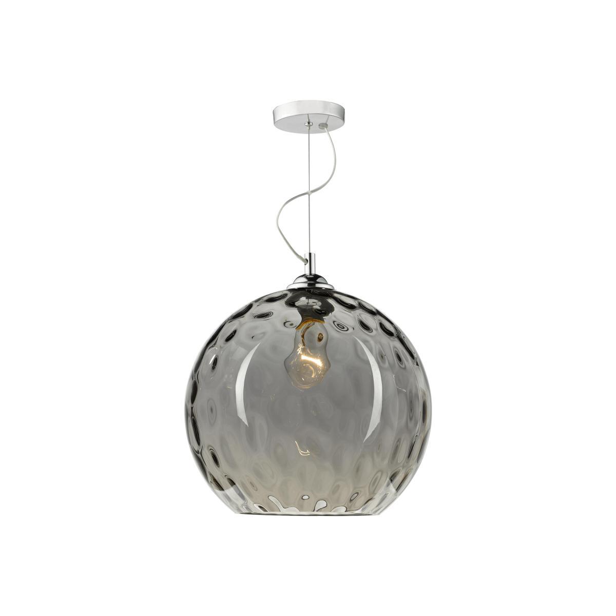 This gorgeous glass pendant has a silver smoky finish, but also a subtle dimple pattern, helping to create an intimate setting. Its polished chrome details add modern lux. Why you’ll love it. Detailed smoked glass ceiling light. Eye-catching dimple effect featured all over. Metallic ceiling cup. A great addition to a dining or living area. Height adjustable. Made with care for Furniture Village. What you need to know. Dimpled silver-smoked glass. Polished chrome ceiling cup. 1 x 60W max ES GLS bulb recommended. Dimensions. Height: 40-185cm (XX in). Diameter: 30 Dia (12.1 in).