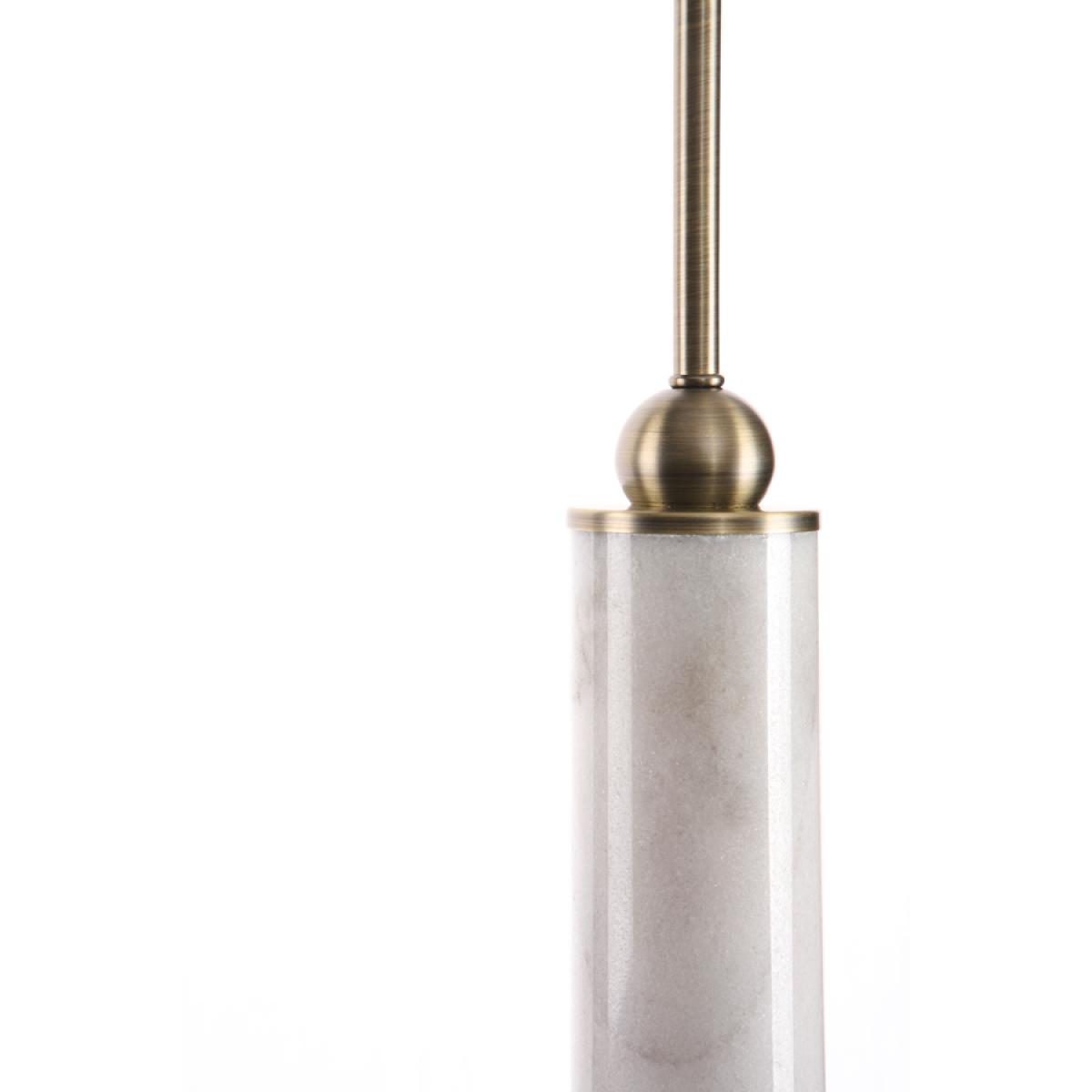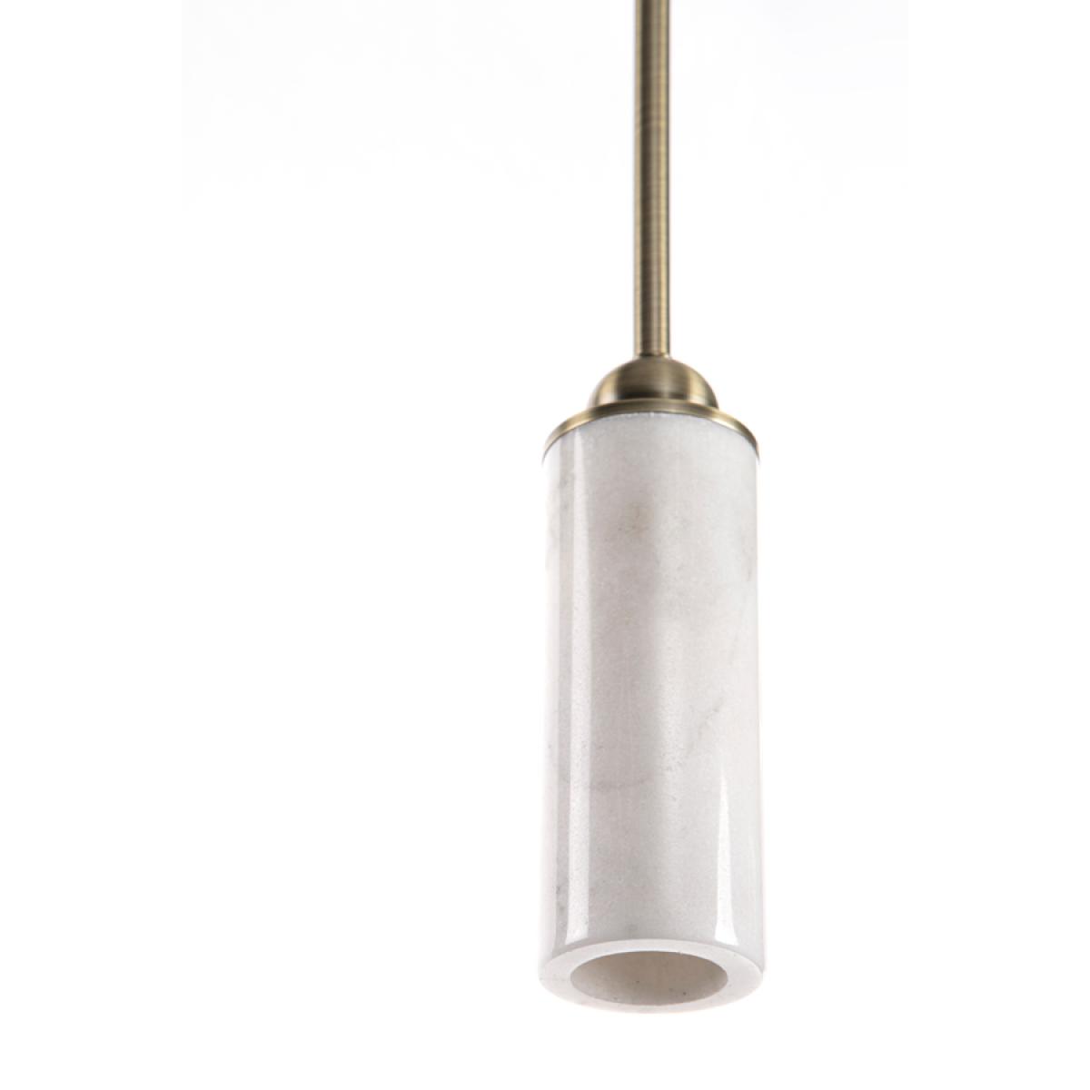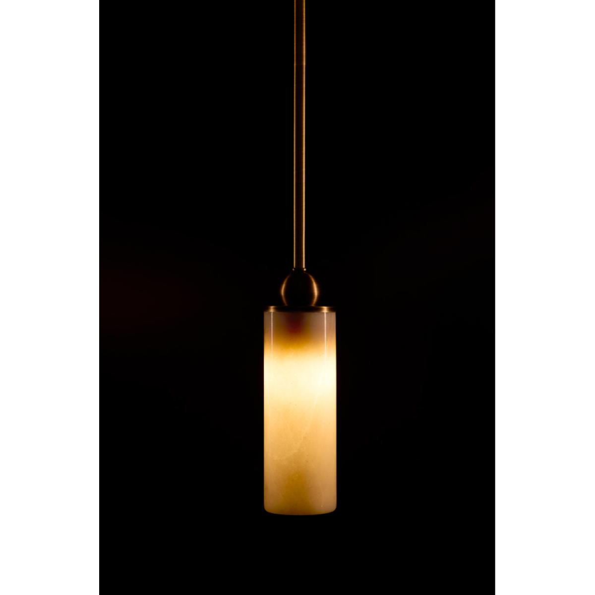 A sleek, distinctive contemporary pendant light. Perfect for use over breakfast bars and bedside tables. Alabaster diffuser. Steel metalwork with a brushed bronze finish. Drop rod supplied in three parts to allow for height adjustment prior to installation. Supplied complete with 3W G9 warm tone LED bulb (3000. K colour temperature) – non dimmable.