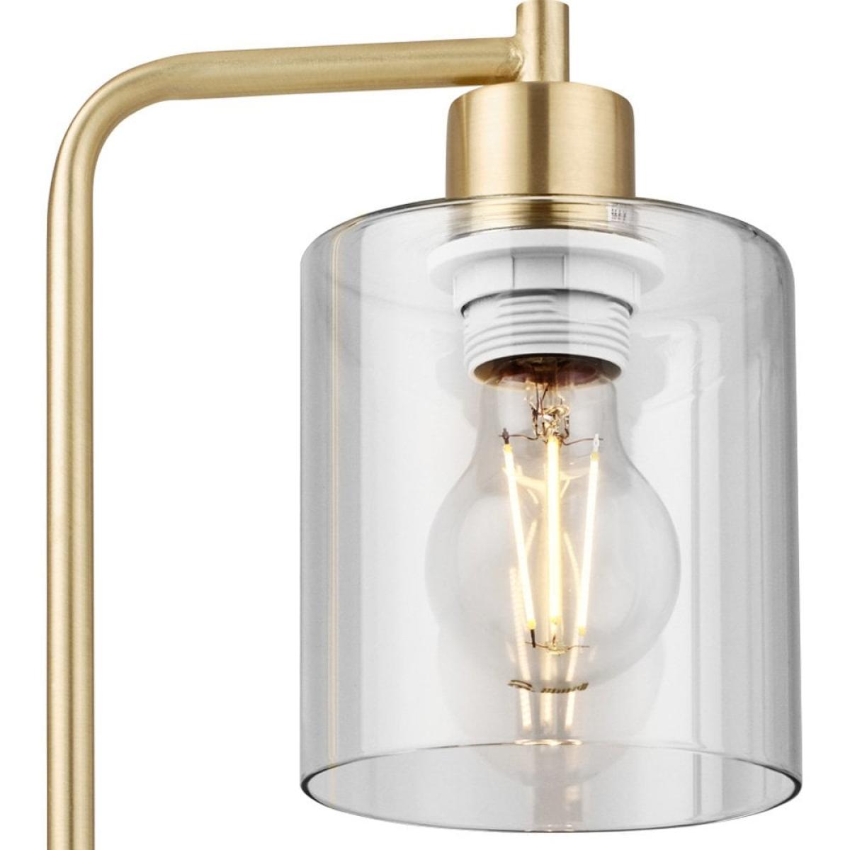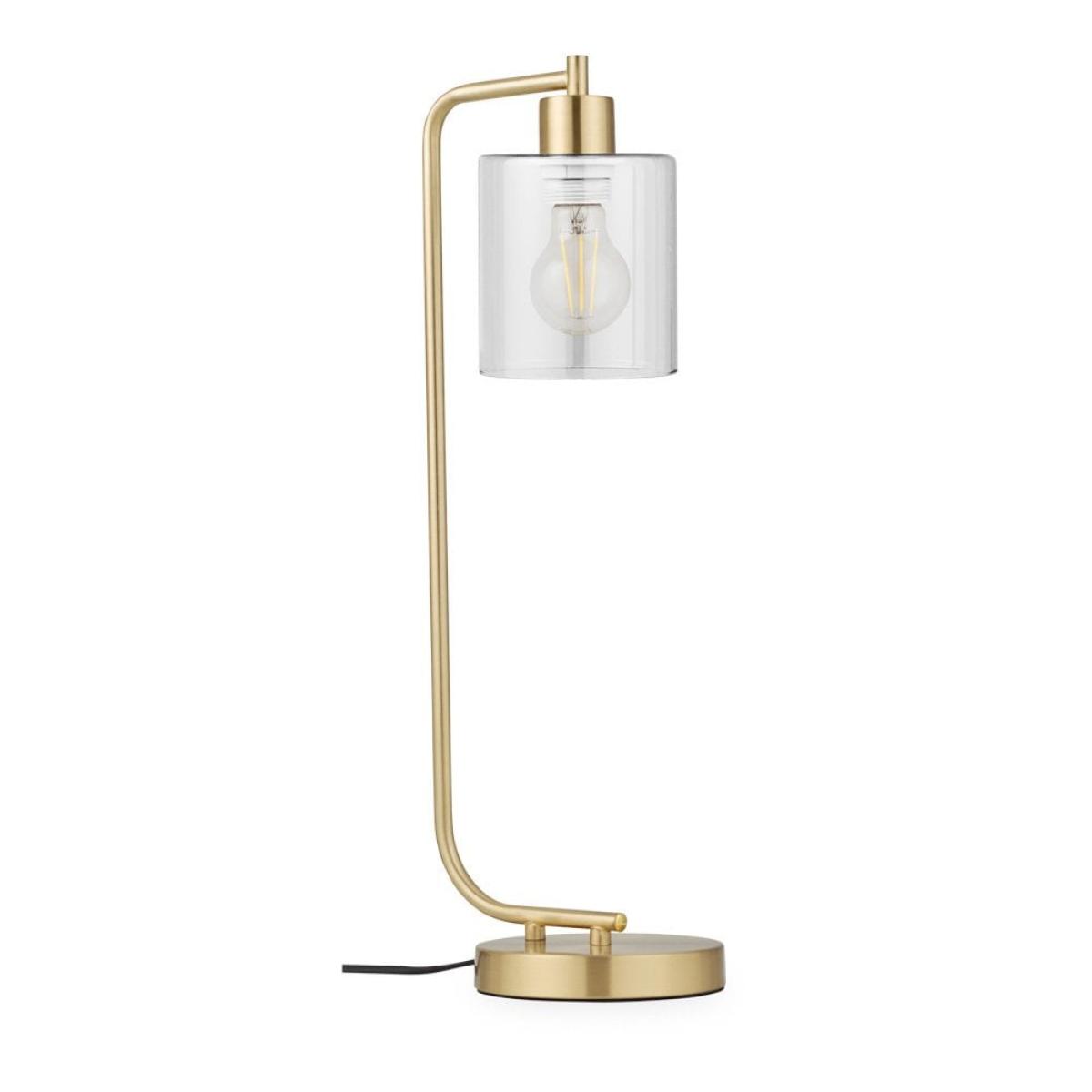 Add a touch of charm to your bedside table and home office with our Aurelia table lamp. The compact Scandinavian-inspired design features a clear glass cylinder shade, paired with a stream-lined brass metal base. The Aurelia metal table lamp creates a warm and relaxing light glow that fills the room and holds your gaze.