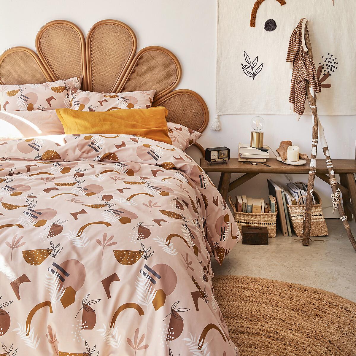 Abstract shapes and foliage patterns. The Aurès range has something for every room in the house, with its vibrant graphic pattern. An exclusive design by La Redoute Interiors. Cotton is part of our daily lives. We love it for its suppleness and softness. Easy Care, it is ideal for the beds of young and old alike!Product Details • 100% cotton • 144 thread count • Front / back foliage and abstract shapes print • Envelope-style opening. Change up your bedding look for each season by mixing and matching this range with plain items from our Scenario bedding collection. Care Advice • Machine washable at 60°C • By washing your laundry at 40°C instead of 60°C, you limit energy consumption. Dimensions • 140 x 200cm: Single • 200 x 200cm: Double • 240 x 220cm: King • 260 x 240cm: King. Pillowcases sold separately. • OEKO-TEX® Standard 100. Standard 100 certification by OEKO-TEX® tests textile products for harmful substances via an independent, international label.