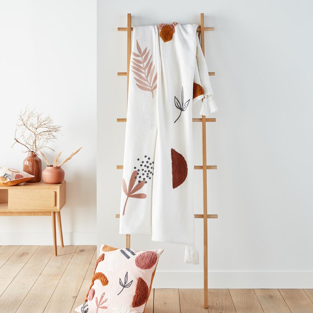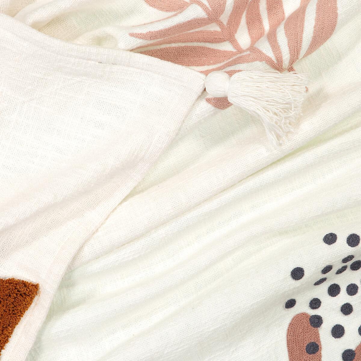 I love this throw for its blend of texture and subtle embroidery, which adds a touch of handcrafted detail without feeling overly ornate. It works particularly well in minimalist or Scandi-inspired interiors, where natural fibres and simple forms are key, but it can also warm up more eclectic spaces. Practical styling tips include draping it casually over a sofa or layered on a bed for an inviting, lived-in look. For a cohesive feel, pair it with other cotton or linen accessories and keep your colour palette neutral or earthy to allow its embroidered details to stand out. It’s a versatile piece that brings both comfort and style to everyday living spaces.