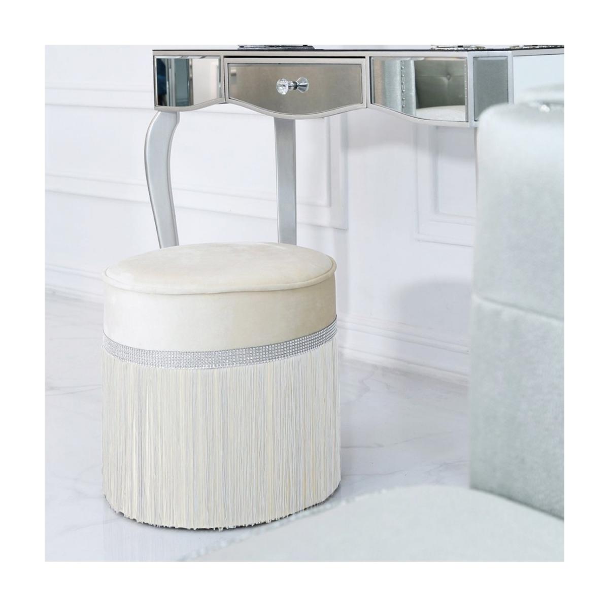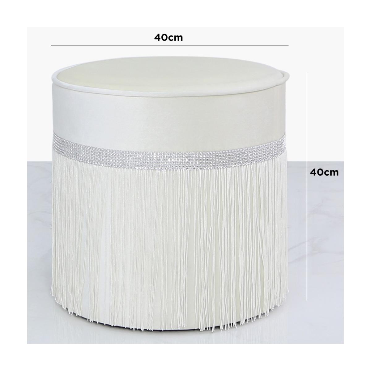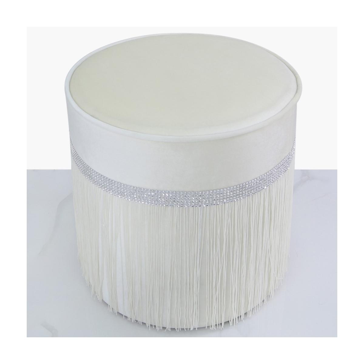Aurora Boutique Ivory Round Stool With Diamante Band With Tassel Detail