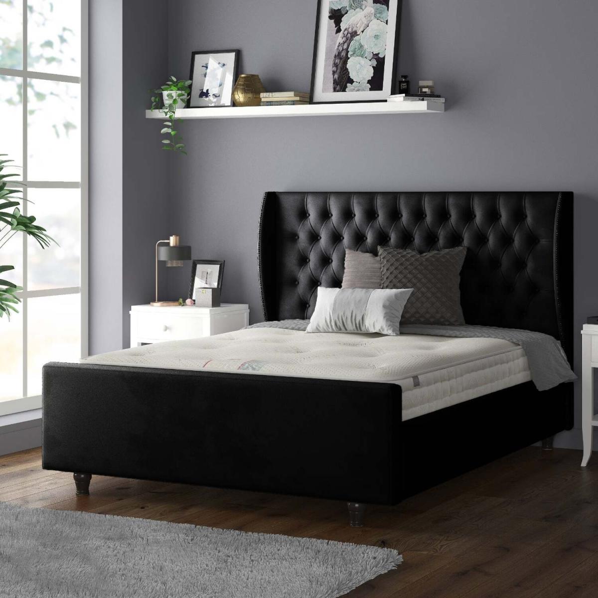 I’m a fan of this wing-back velvet bed (often called the Aurora Chesterfield) because its deep button-tufting and gentle wings give a structured, finished look without feeling overly formal. The black velvet adds a subtle sheen and anchors a room, making it ideal for modern, art-deco or even industrial schemes where you want a touch of softness against harder materials. Styling tip: keep bedding crisp and tonal - think dove-grey linens with a charcoal throw or a couple of jewel-coloured cushions for contrast. Pair with slim-lined metal or mirrored bedside tables and warm-toned lighting to balance the dark frame. A low-pile rug in a neutral shade and a sculptural plant or two will complete the look without overcrowding.