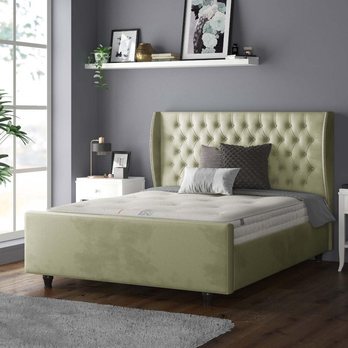 Aurora Chesterfield Wing Plush Velvet Bed Frame with Matching Buttons - Light Green / Single