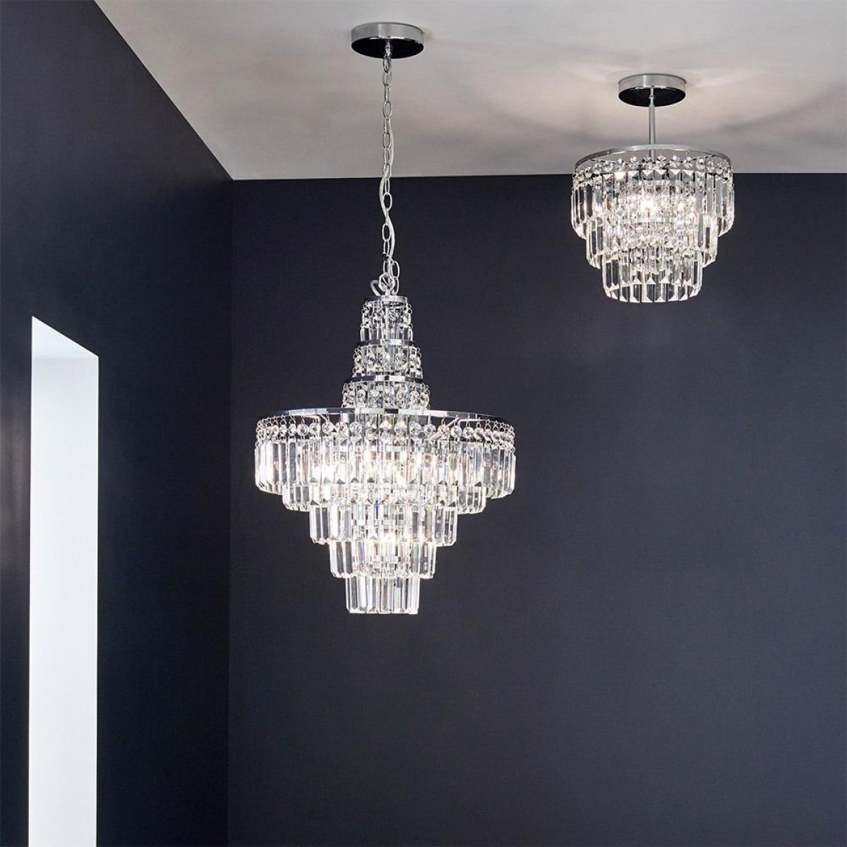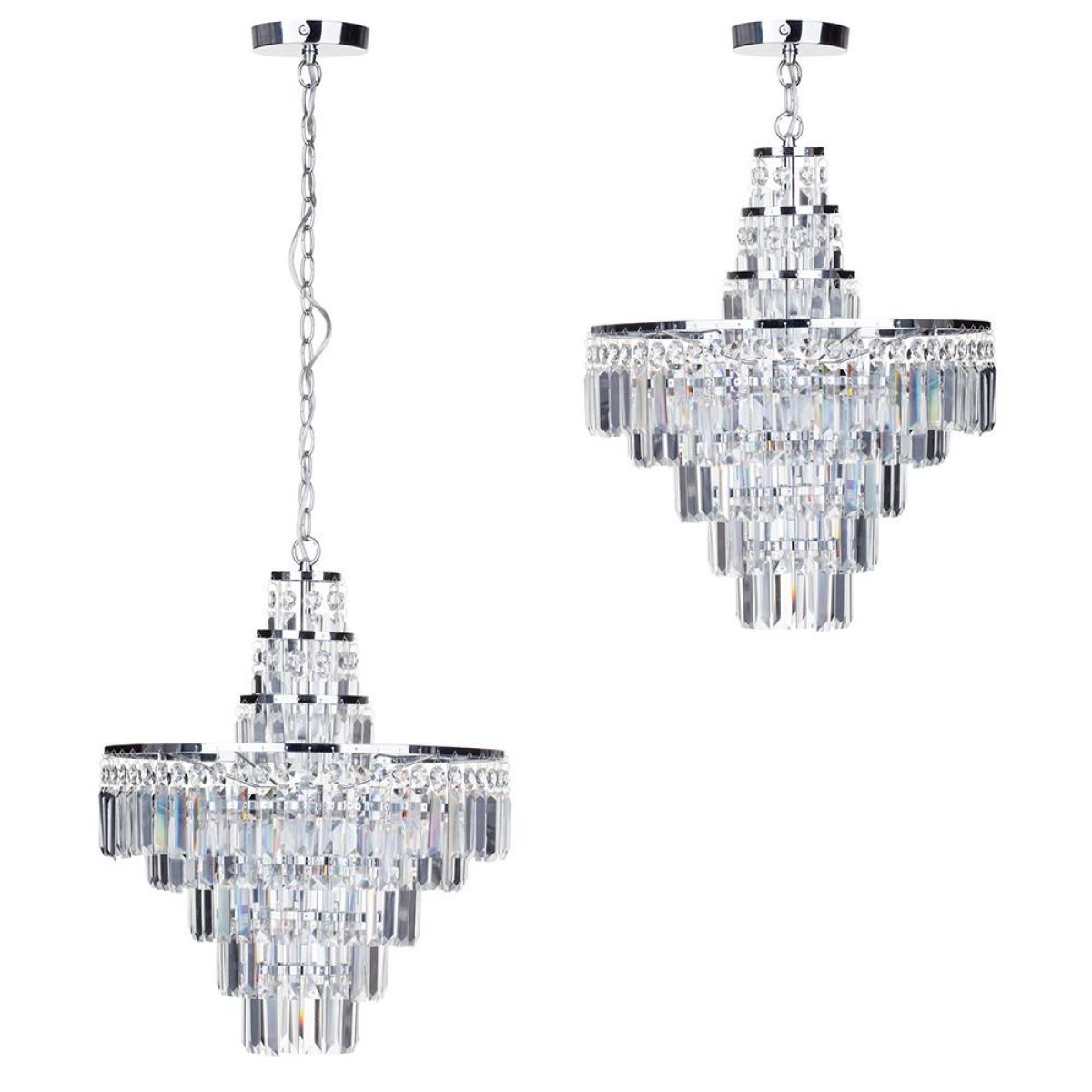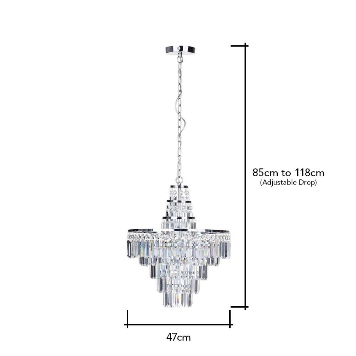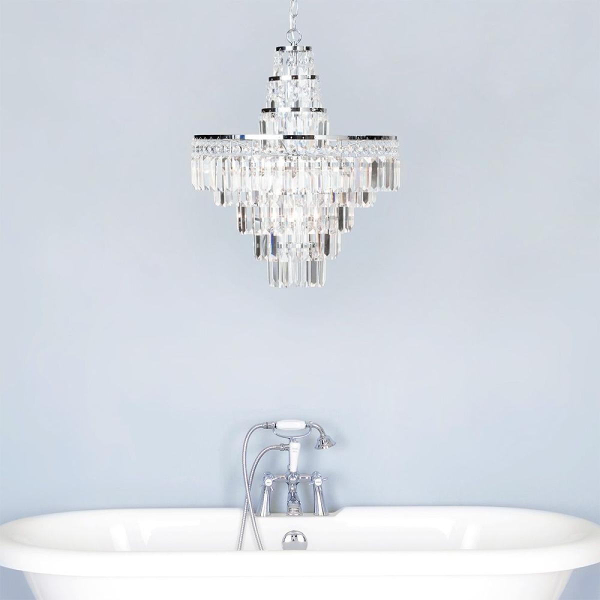 Elegance can come in a range of shapes and styles, but for a showstopping statement piece this gorgeous crystal pendant is a perfect pick. The bold hanging style acts as a focal point for any décor, with glass prisms hanging from a chrome structure to diffuse the light and add a sophisticated shimmer to the light. Use over a dining table or in the centre of a high ceiling living room for breath-taking results. Coming with an IP44 rating, this piece can also add unique glamour to any bathroom space!.