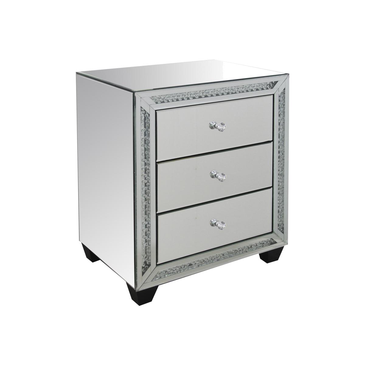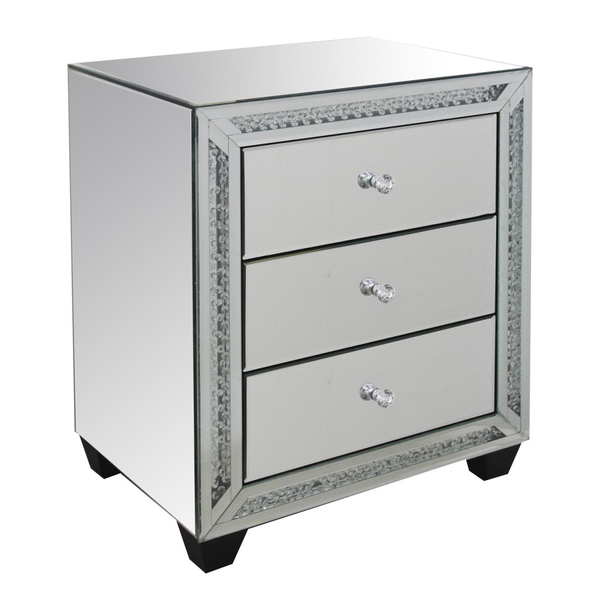 Aurora Crystal Mirrored Three Drawer Bedside Table