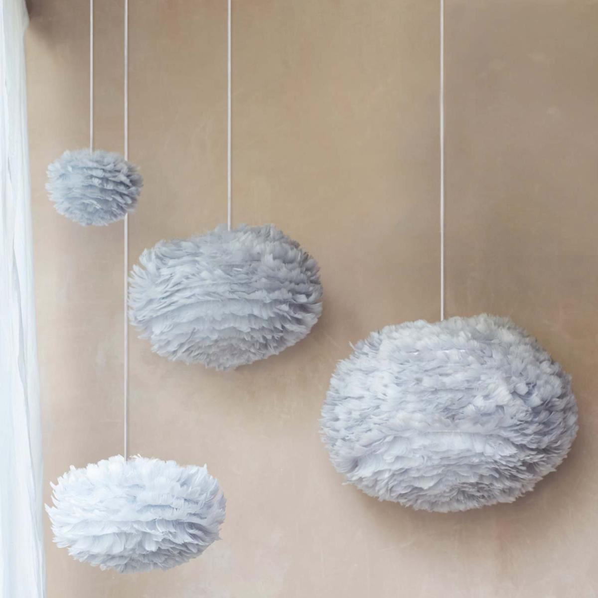 Beautifully tactile and luxurious, our bestselling Aurora grey feather pendant shades are now available in a stunning soft grey colourway. Each shade is made with over 1,800 natural goose feathers and dyed in a modern silver grey colour. Hang from the ceiling as a pendant light, or style as a table or floor lamp. Small (VBK1629): H20 x Diameter 35cm. Medium (VXA2583): H30 x Diameter 45cm. Large (VLP5081): H40 x Diameter 65cm. Made of goose feathers, paper and steel. Feathers may be ruffled upon arrival. Please allow a few days to settle into position. Requires 1 x E27 LED bulb Max 15W (not included). Shown with our metal canopy cord set. Shade only. Fittings not included. Keep lamp clean by using a hair dryer on the coolest setting, 25cm away from the lamp. Use a damp cloth for dust that is difficult to remove.