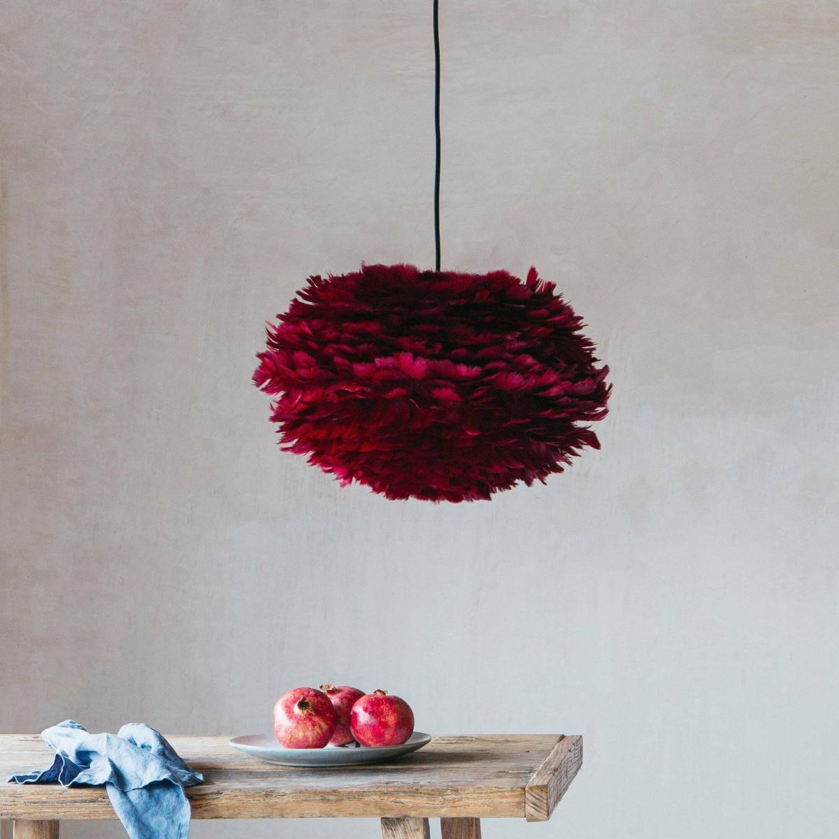 I love this pendant shade for its bold colour and textured feather finish, which instantly adds a touch of drama and sophistication to a space. It works particularly well in eclectic, modern, or boho interiors where a statement piece can truly shine. Practical styling tips include pairing it with neutral surroundings to make the colour pop, or contrasting it against softer textures for visual interest. It’s ideal for smaller dining areas or as a feature in a living room, where it can bring warmth and personality without overwhelming the space. Just be mindful of the weight and placement - it needs to be hung carefully to ensure it remains a focal point without overpowering the room.