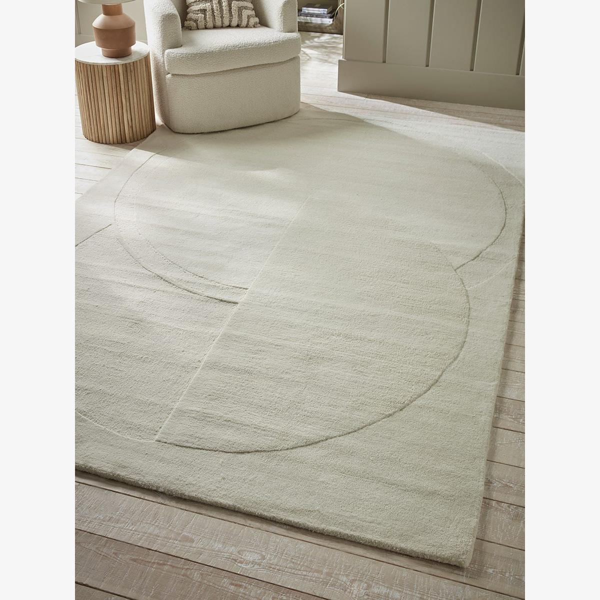 Crafted from a sumptuous wool, this soft and cosy rug is the perfect neutral addition to your home to add a touch of minimalist comfort to your living area. A circle and semi-circle are positioned in the centre of our Aurum Rug to create a subtle textural effect, perfect for placing in a variety of interiors.