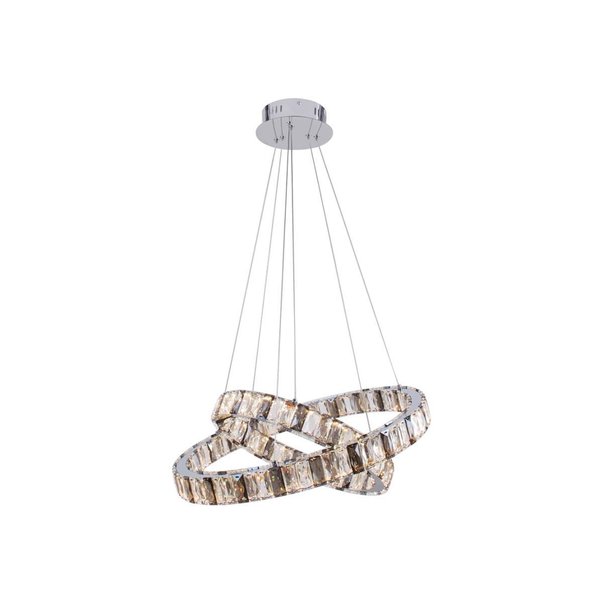 Grand 2 Ring LED Ceiling Pendant. The Ausilia 2 ring pendant is an amazing fixture to add character to any home. The dual ring design allows it to be hung in a number of angles and the warm white LED, paired with the smoked glass, gives off a warm glow throughout the room. This light will fit perfectly into any home that boasts modern decor, or into traditional households that want to add some glitz.