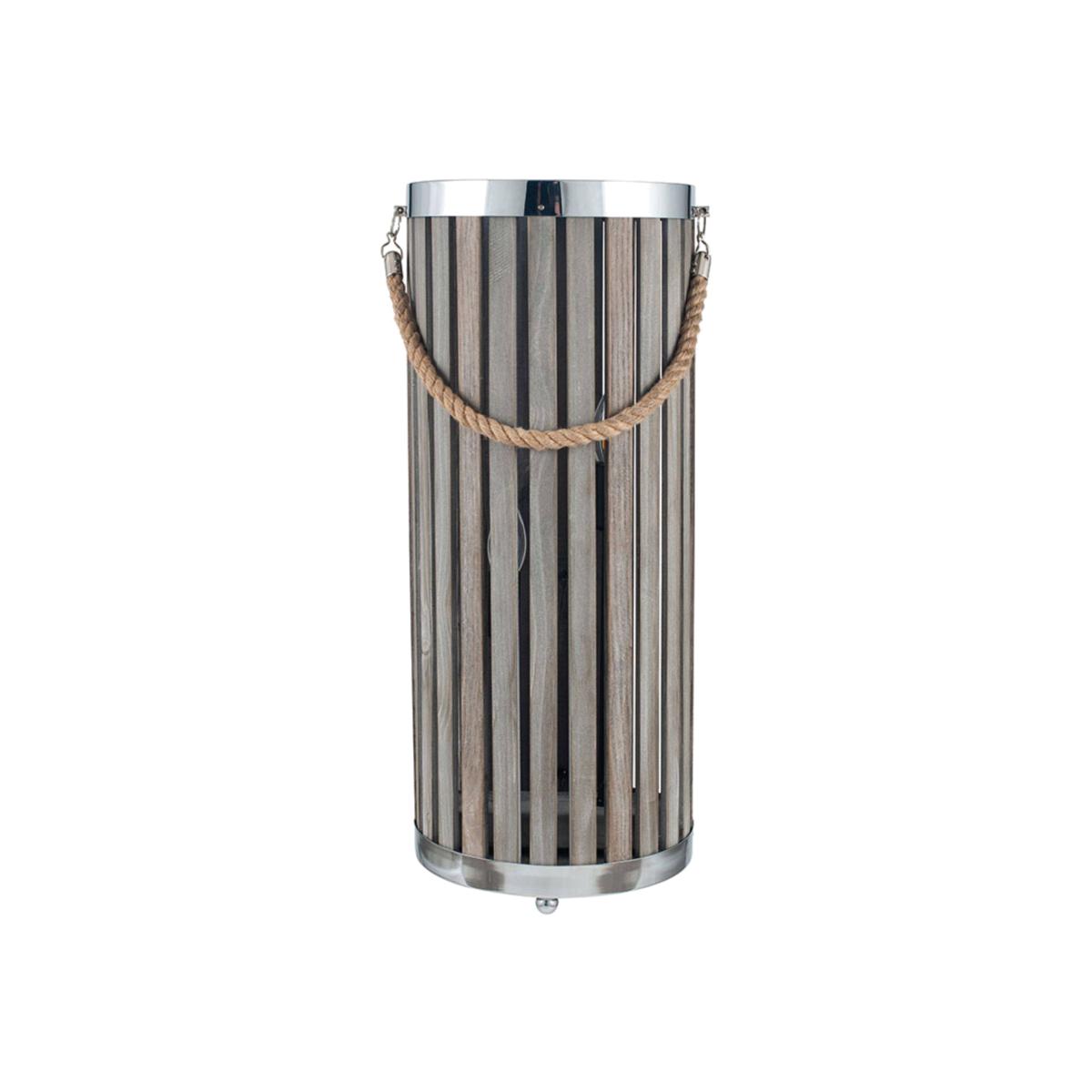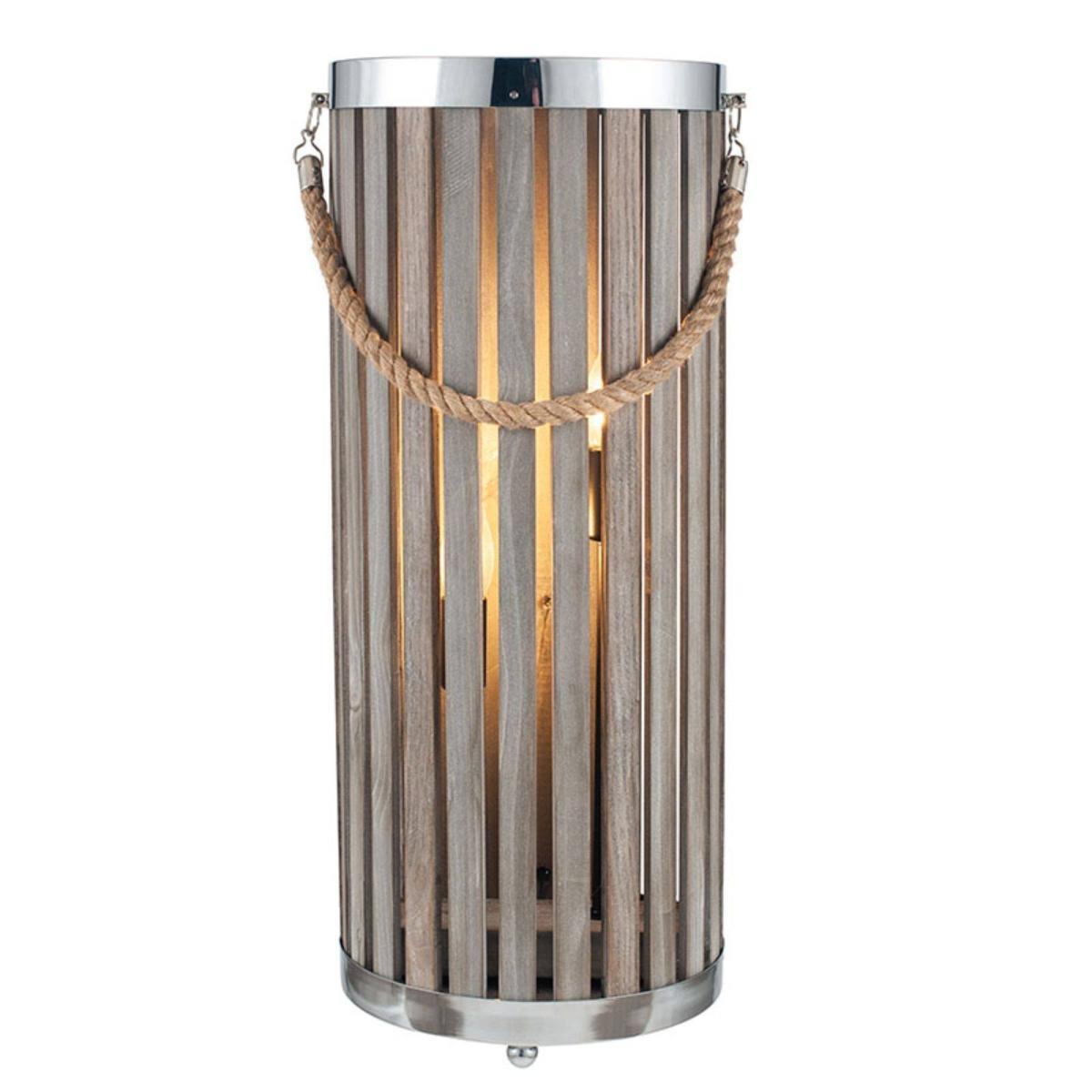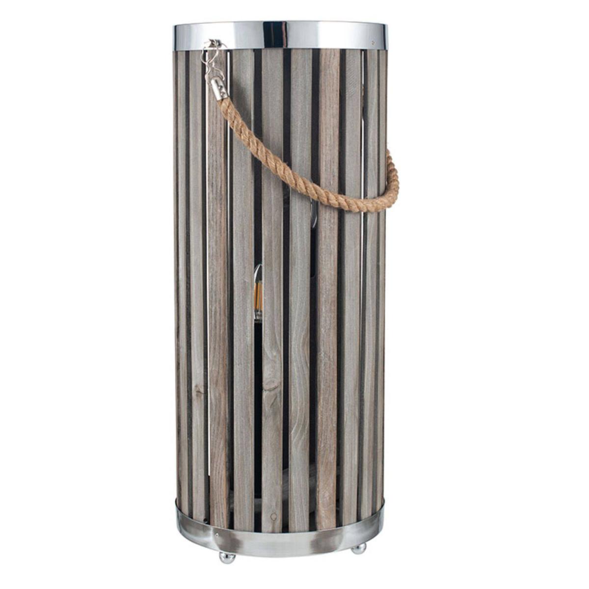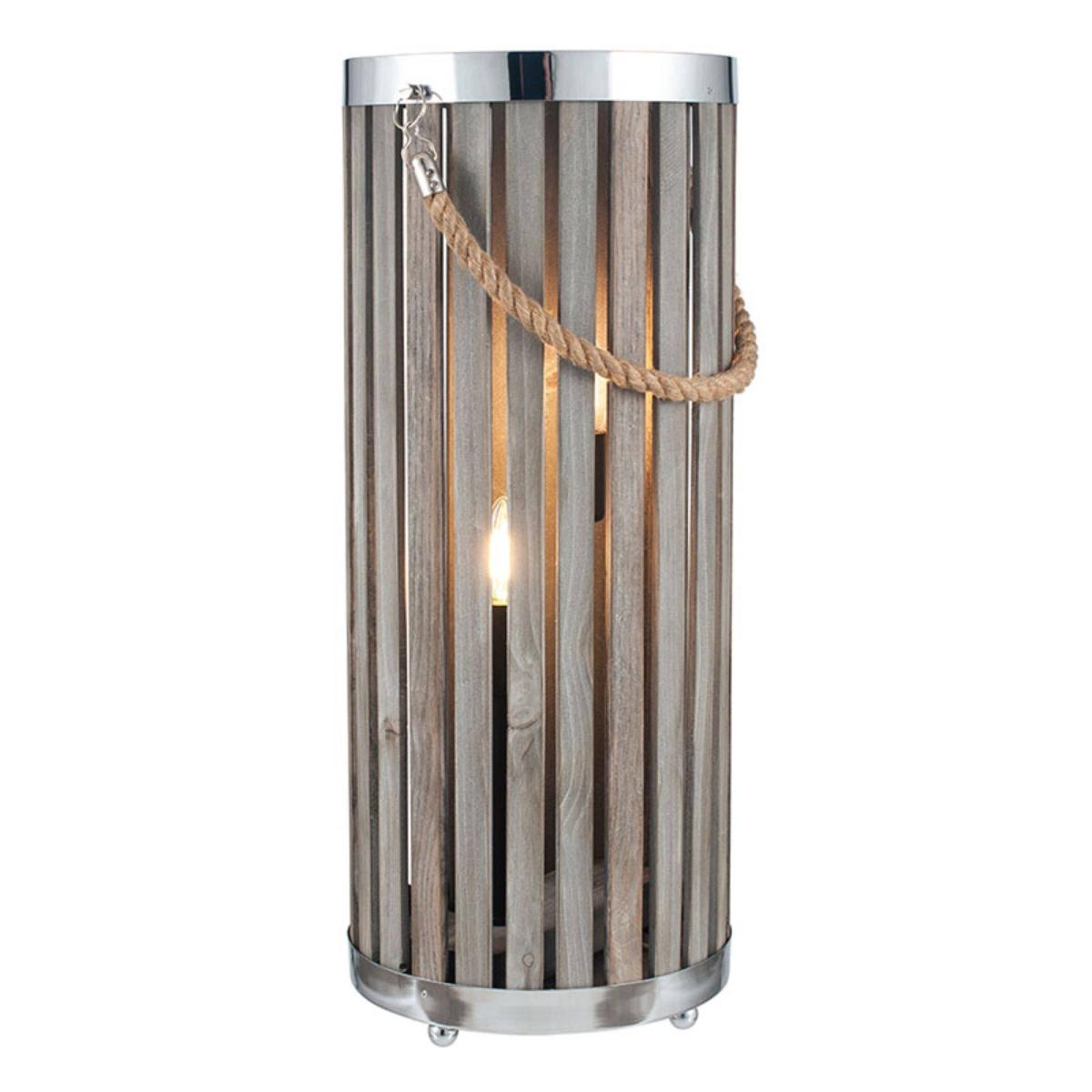 A cosy and homely, grey washed wooden slat lantern floor lamp, perfect for warming winter nights. Curl up under a blanket alongside the warming and rustic Austell lantern floor lamp, the perfect addition to any cosy living space. A wooden slat lantern design with chrome trim and rope handle emanates a homely feel and would look stunning in any home interior space. Paired with vintage light bulbs, this lantern will provide warming, glowing light for any corner of your home.