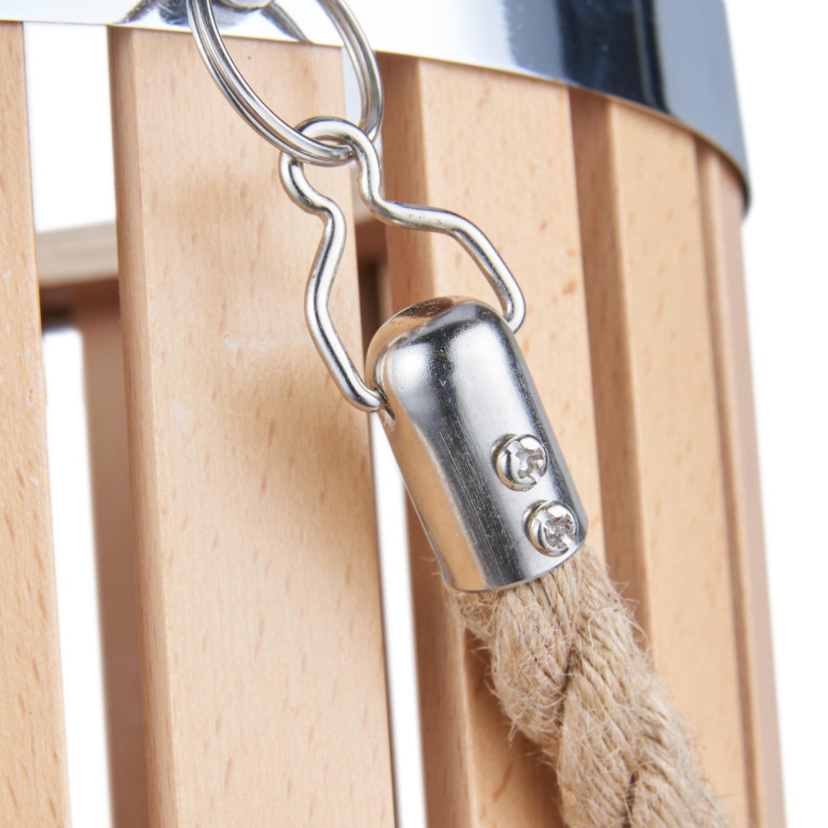 Bring a touch of the coast into your home with this Austell floor lamp. It has been made with a wooden slatted design that helps to diffuse light throughout your room of choice.  The rope handle and chrome edging helps to give this floor lamp the perfect finishing touch.