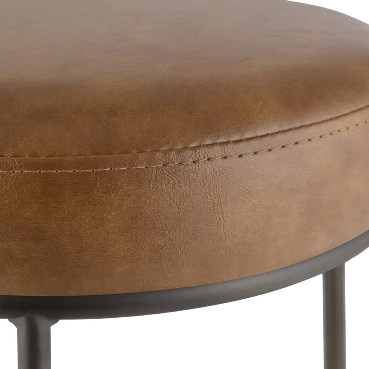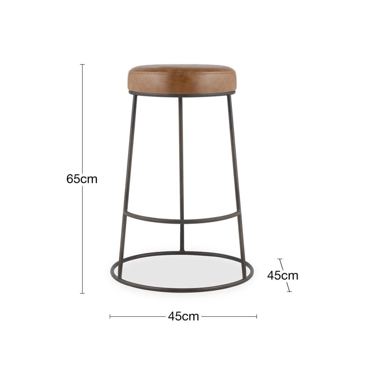 Add a rustic vibe to your kitchen island with the Austen kitchen stool. Featuring a vintage tan faux leather seat for comfort and style, and a rustic metal frame. The mix between the industrial design of the frame and the luxurious faux leather fabric makes for a standout stool. Available in a low stool and a bar stool version, as well as other fabrics and colours.