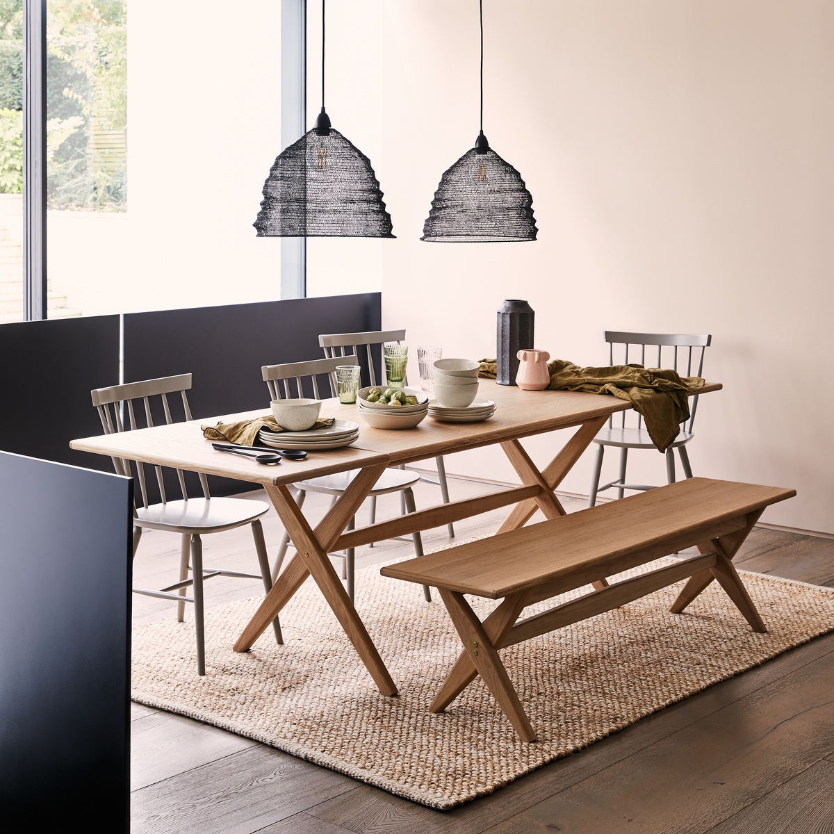 I really like this table because of its clean, natural look and practical extendable design, making it ideal for both everyday dining and entertaining guests. The oak finish adds warmth to a variety of interiors, from Scandi-inspired minimalism to more traditional or rustic schemes. It works particularly well in neutral-toned rooms with simple, understated decor, allowing the wood's natural grain to stand out. For styling, consider pairing it with a mix of sleek, modern chairs for a contemporary feel or some upholstered or woven seats for softness. To keep the look cohesive, keep accessories minimal-perhaps a simple table runner or centrepiece-so the table remains the focal point. Its extendable feature makes it highly versatile, so it can adapt seamlessly to changing space needs.