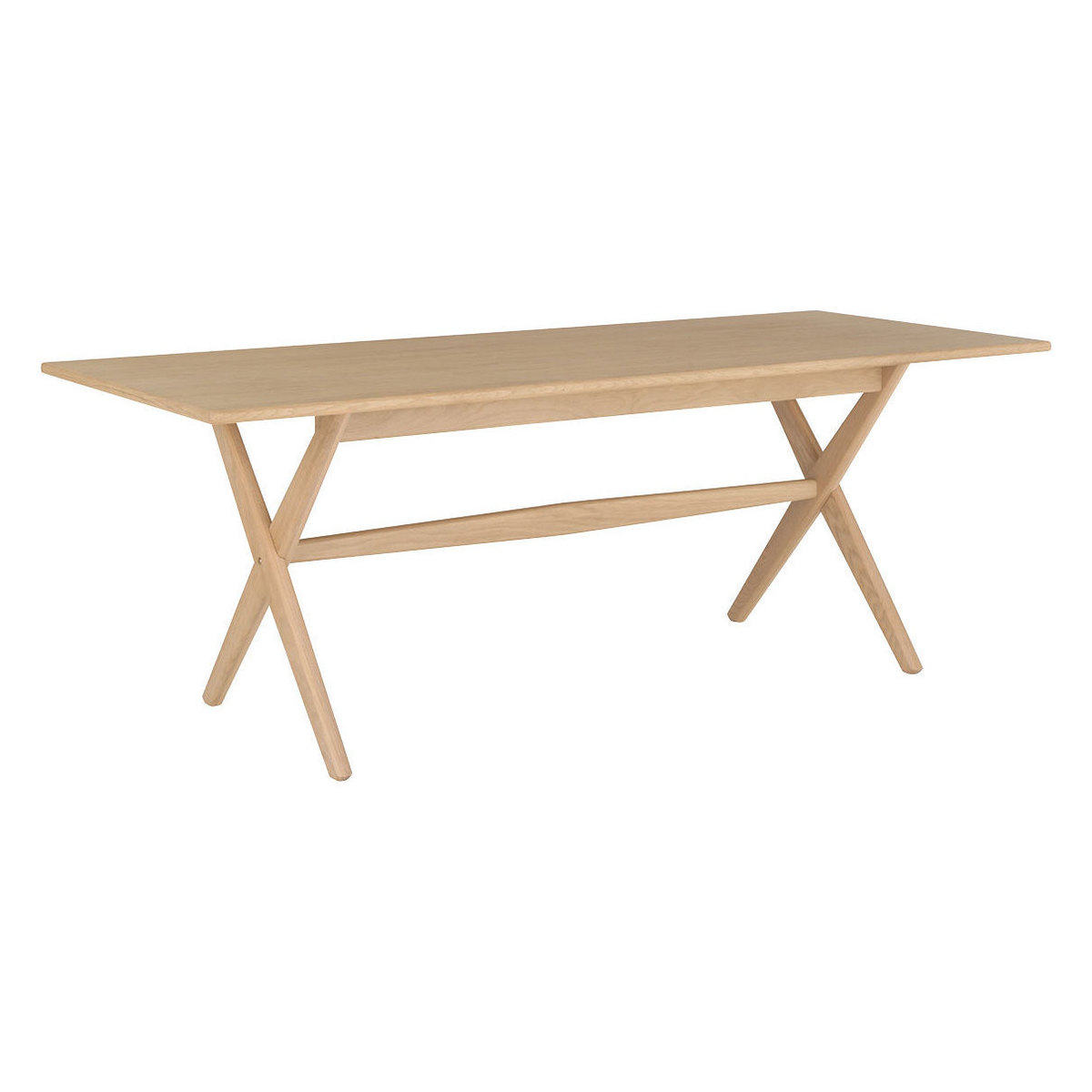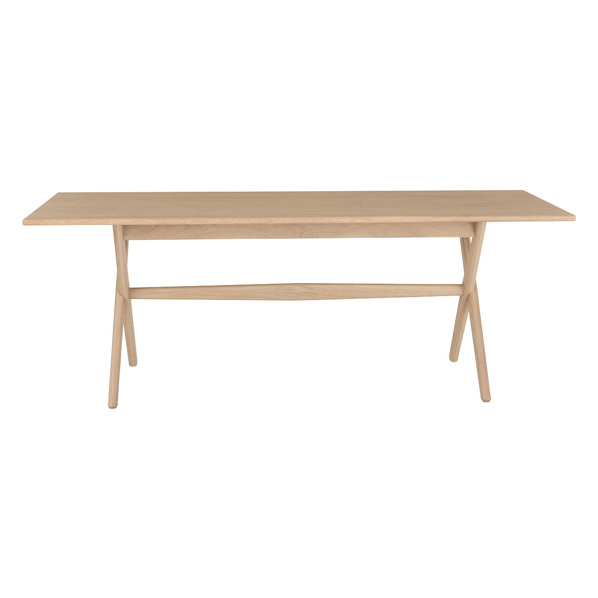 Clean, pure and elegant, the Austin 8 seat oak rectangular dining table evokes the spirit of classic Scandinavian designs from the 50s and 60s. Designed in house by Matt Long and made from solid and veneered oak, the table's cross frame and stretcher bar have smooth, gently rounded edges. The table is made in a small factory in Estonia and a matching bench is available, together with a round Austin dining table. The design's attractive, slightly whitened finish is created by a matt lacquer that also protects it.