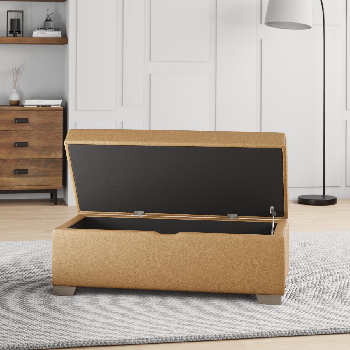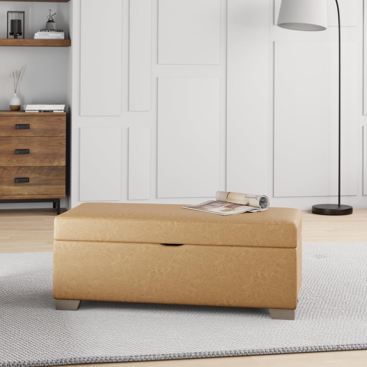 Austin Faux Leather Storage Footstool Tan