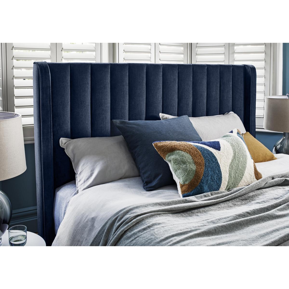 Discover The Artisan Collection, designed to bring handcrafted luxury and style to your bedroom. This premium range includes a selection of divan bases – from traditional platform tops offering a firmer feel to sumptuous pocket sprung options for enhanced mattress comfort. Many divan bases are available with storage drawers, in both standard and on-trend shallow designs. Complement your divan with one of the collection’s striking floor-standing headboards, including standout winged designs. Each piece in The Artisan Collection is beautifully upholstered in a wide choice of luxury fabrics and handcrafted in the UK, ensuring exceptional quality and elegant style for your sleep sanctuary. Our Austin foor standing headboard gives traditional elegance a fresh new look. With winged sides and deep fluting, the look is striking and stylish. Handcrafted for Furniture Village. Why you'll love it Contemporary style meets traditional elegance in this headboard. With deep cushioning, bold linear fluting and winged sides. Fully upholstered from top to floor for a flawless finish and a luxurious look. In a choice of beautiful fabrics. Handcrafted in the UK. Find the Austin floor standing headboard only at Furniture Village. What you need to know This floor standing headboard is supplied with bolts to attach it to a divan base. Available in single, small double, double, king and super king sizes. 140 cm tall. Clean regularly using a soft brush or vacuum with the curtain attachment. Deal with any spills promptly. Professional cleaning advised for oil- and grease-based stains. Some fabrics can show wear on areas of more use or in direct sunlight. Item code: AUSTH146--019