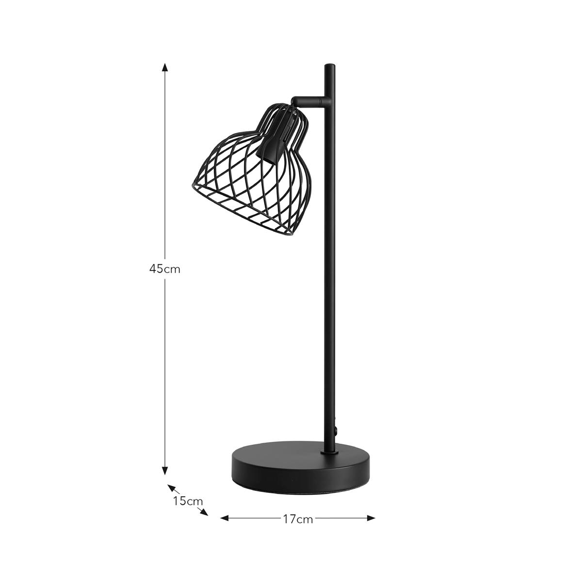 * Modern, Industrial Design* Made from Durable Metal* Adjustable Head* Requires: ES E27 Cap Type & Globe Bulb With its sleek, industrial design and adjustable head, this table lamp is as stylish as it is practical. Crafted from durable metal, it’s ideal for workspaces, reading nooks, or anywhere that needs focused lighting.