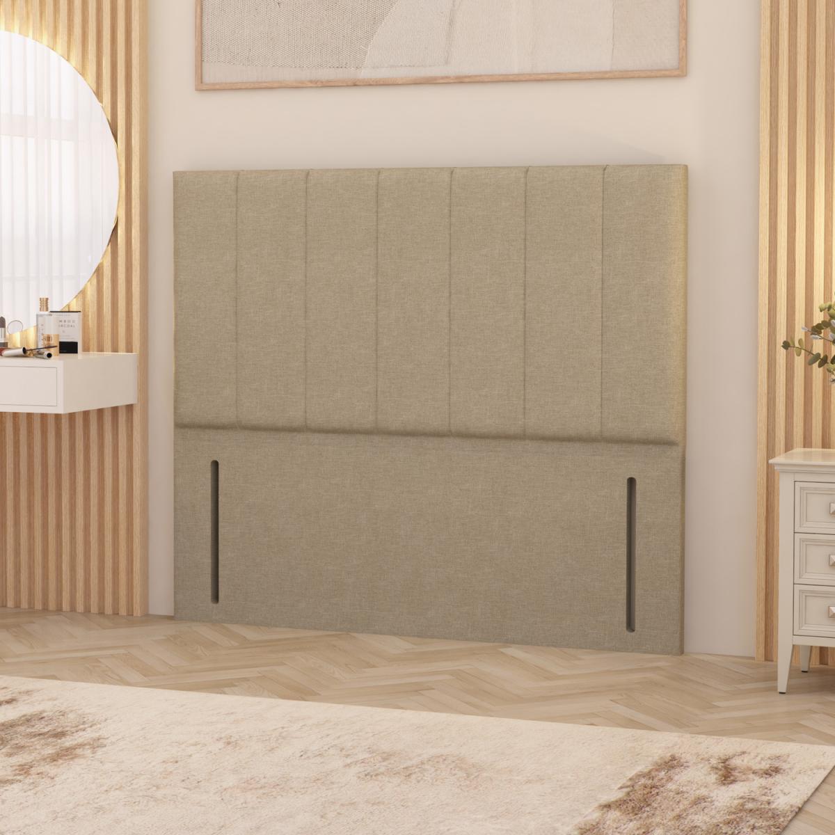 The Austin Linen Fabric Floor Standing Headboard is the definition of refined luxury and contemporary craftsmanship. Upholstered in premium Linen Fabric, it features intricate deep-padded vertical panels for a sophisticated, tailored finish. At 54 tall, this floor standing headboard creates a striking focal point, offering both visual grandeur and superior back support for reading or relaxing in bed. Expertly handcrafted in the UK, the Austin combines durability with elegance, perfectly complementing both modern and classic interiors. Designed to pair seamlessly with all standard UK divan bases. Headboard height from the floor is 54" 137cm, the front panel of the headboard is 32" 81cm. This headboard can be fitted into your existing base with screws or simply placed behind your bed and against the wall.