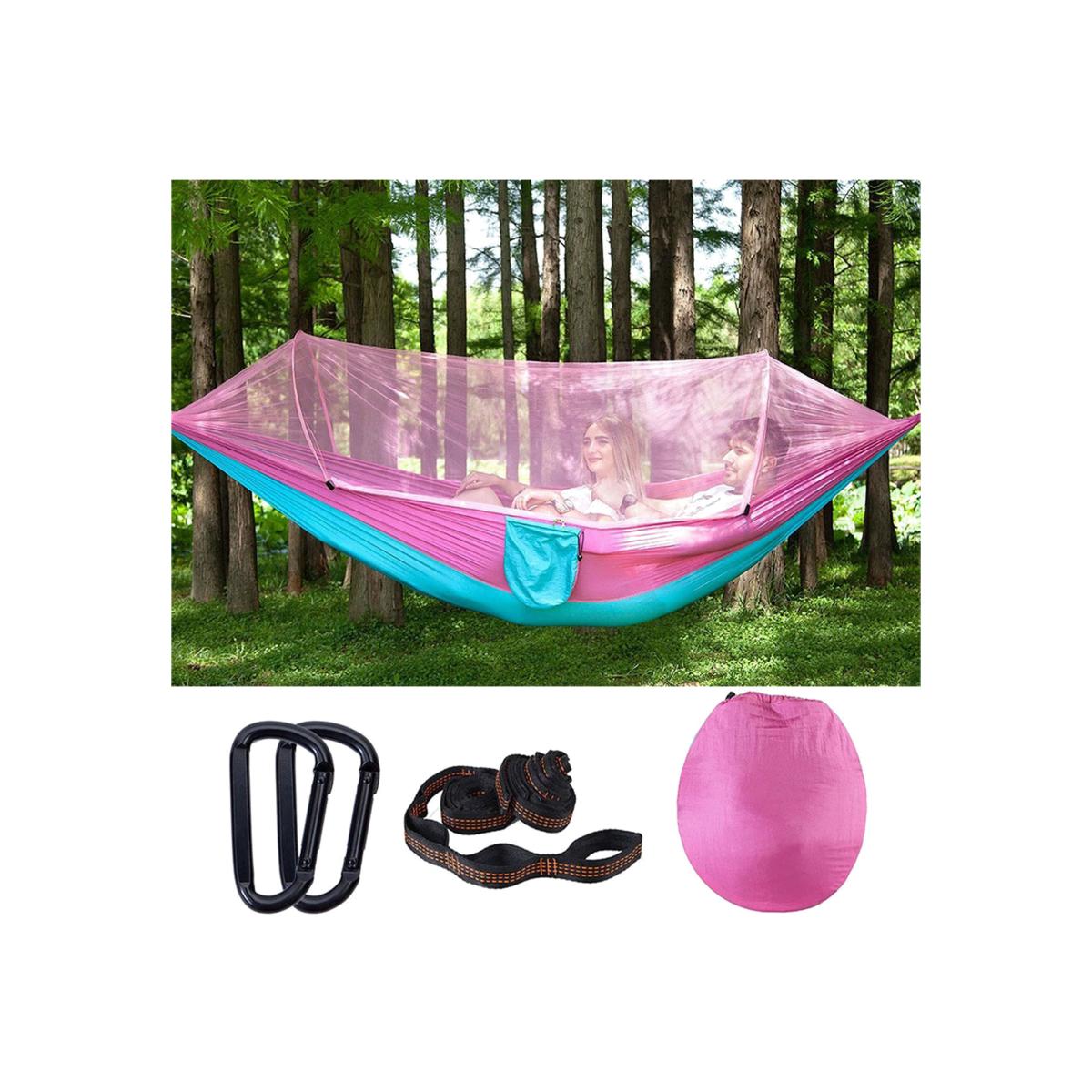 The comfortable hammock comes in a quick opening design, with buckles and belts included for a secure installation. It features a mesh mosquito net for protection while you relax. You can choose from a single or double hammock with 4 different colors,which are valid in blue, light green, pink or army green. Made from durable polyester mesh, the hammock is perfect camping or for lounging in your garden this summer. Please note the color of belt is at random.