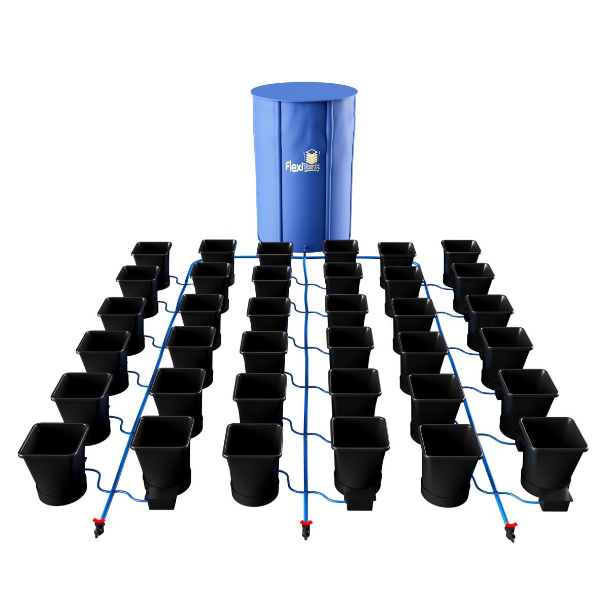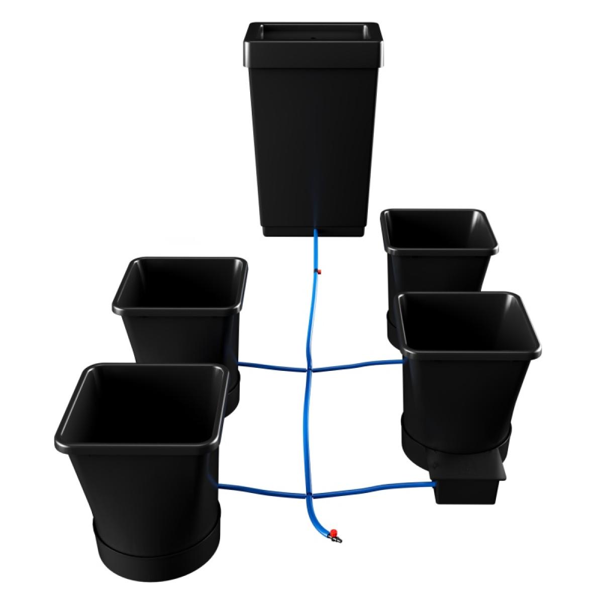 Choose from 4 to 100 pots in this modular Auto Pot 1. Pot XL watering system. Developed by Auto Pot to meet the demands of the ambitious gardener, featuring a MASSIVE 25 litre growing capacity the 1. Pot XL is perfect for growers looking to cultivate BIG plants and achieve even BIGGER harvests. Flexible by design. A round base and modular design means each 1. Pot XL module can be rotated, repositioned or removed without difficulty or detrimental effects on the system. Such adjustability maximises the efficiency of lighting arrangements at every stage of growth. Immense pot size. A 25 litre pot means plants grow efficiently, continuously and vigorously. Plant development in the 1. Pot XL module is unhindered by the need to transfer to a larger pot, such is the module's exceptional capacity. Plant health. Each module is fed by its own AQUAvalve, responding to the plant's needs and ensuring each plant can develop at it's own rate - essential for the stock, specimen and mother plants with which commercial and hobby growers populate their greenhouses. KEY FEATURES: Complete plant watering systems Versatile enough for all your plant projects Fully automated Power-free No mains water required Zero waste Featuring big 25. L pots Each pot served by its own AQUAvalve water control device Includes suitably sized reservoir, all pipework and fittings Easily extended SPECIFICATIONS: 9mm pipe – Outside Diameter 9mm/Inside Diameter 7mm 16mm pipe – Outside Diameter 16mm/Inside Diameter 13mm Tank capacity - varies from 47. L - 750. L depending on size of system ordered Sizes available - 4 to 100 pots