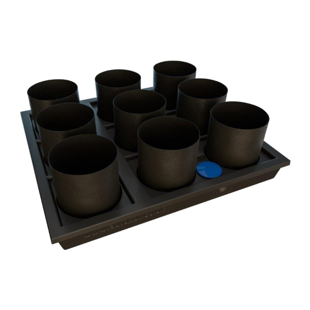 Maximise your growing space with Auto9 XL. Now you can irrigate nine 25. L plastic pots or nine 20. L fabric Flexi. Pots in single tray and lid assembly, all fed by a single AQUAvalve, radically reducing your system footprint. Vastly reduced maintenance, thanks to that single AQUAvalve, makes Auto9 XL ideal for vertical, moveable racks and rolling tables where maintenance access can be a challenge. Reduced maintenance duties means reduced overheads, further slashing the cost of growing. And there's still no compromise on efficiency. Auto9 XL runs on exactly the same gravity-fed AQUAvalve-driven technology as all Auto Pot Watering Systems. You grow power-free, with not a drop of water wasted. KEY FEATURES: Maximises the available area Ideal for moveable racks and rolling tables Draws no more water than 9 single XL trays Reduction in components = reduced maintenance duties Unlike a large, single, flat tray the moulded base minimises standing water Lid blocks light and debris from entering the tray KIT CONTAINS: 1x Auto 9 XL tray, lid & access cover 1x AQUAvalve5 1x AQUAvalve cover 1x 9mm top hat grommet 1x metre 9mm piping 9x 25. L XL Solid Plastic Pot / 9x 20. L fabric Flexi Pot 9x root control disc / 9x Flexi Pot Pot Sock